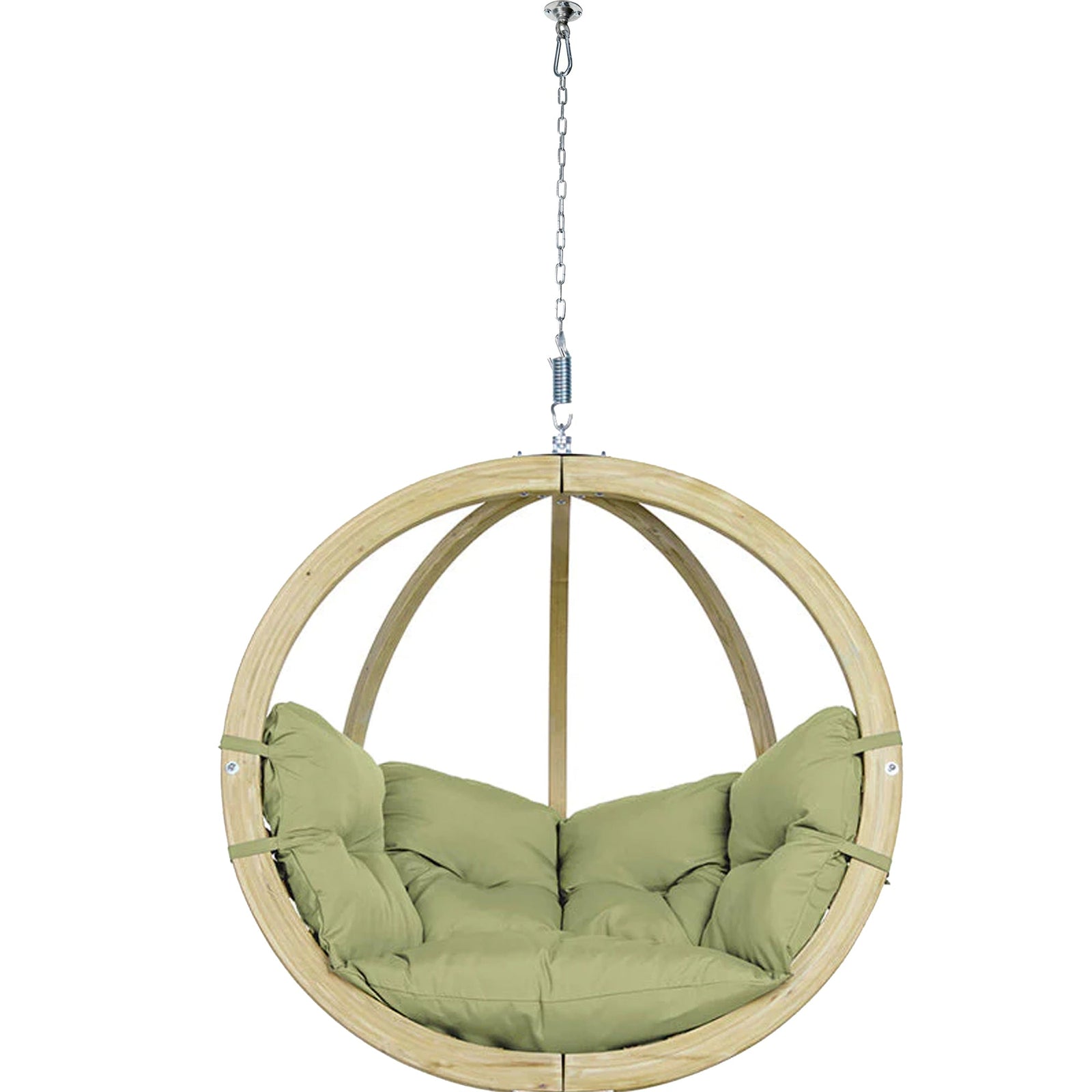 The ideal place to relax in style and comfort, the Single Globo Hanging Chair is made from multiple layers of weatherproof spruce wood and galvanized metal fixings. It has been designed to guarantee maximum stability and safety. The Cushion is bespoke and designed to fit around the chair and is fixed securely. The weatherproof cover is made from 100% polyester.