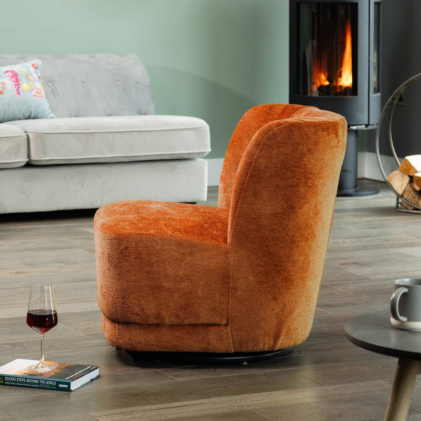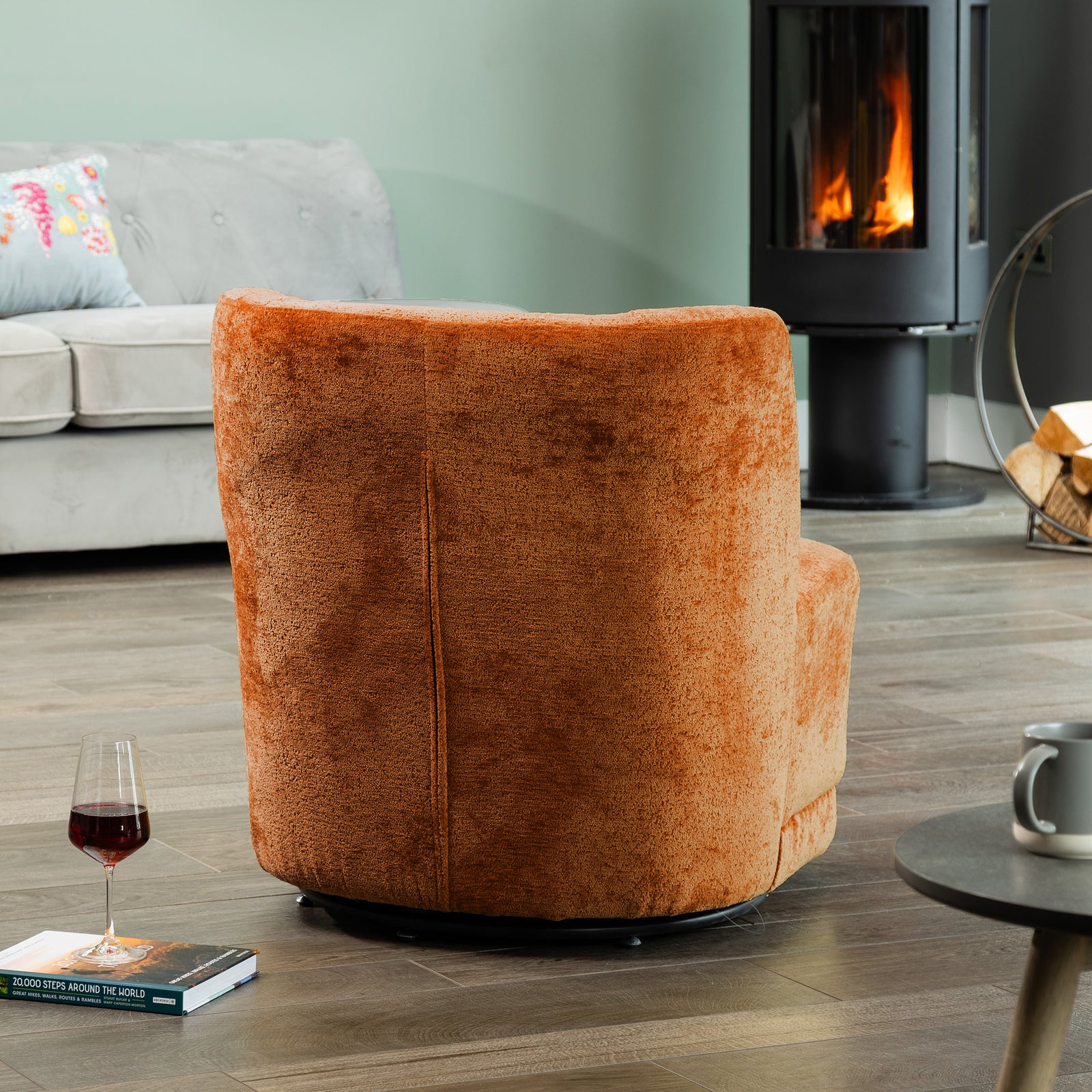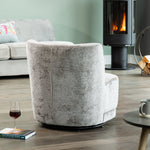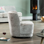 the camerillo accent chair features a thick, foam-filled seat cushion that ensures exceptional comfort, allowing you to relax in style. Its solid, hard wooden frame offers robust durability, making this chair a lasting addition to your home furnishings. The 360-degree swivel base adds a dynamic element, providing ease of movement and versatility, making it ideal for living rooms, bedrooms, or study areas.