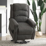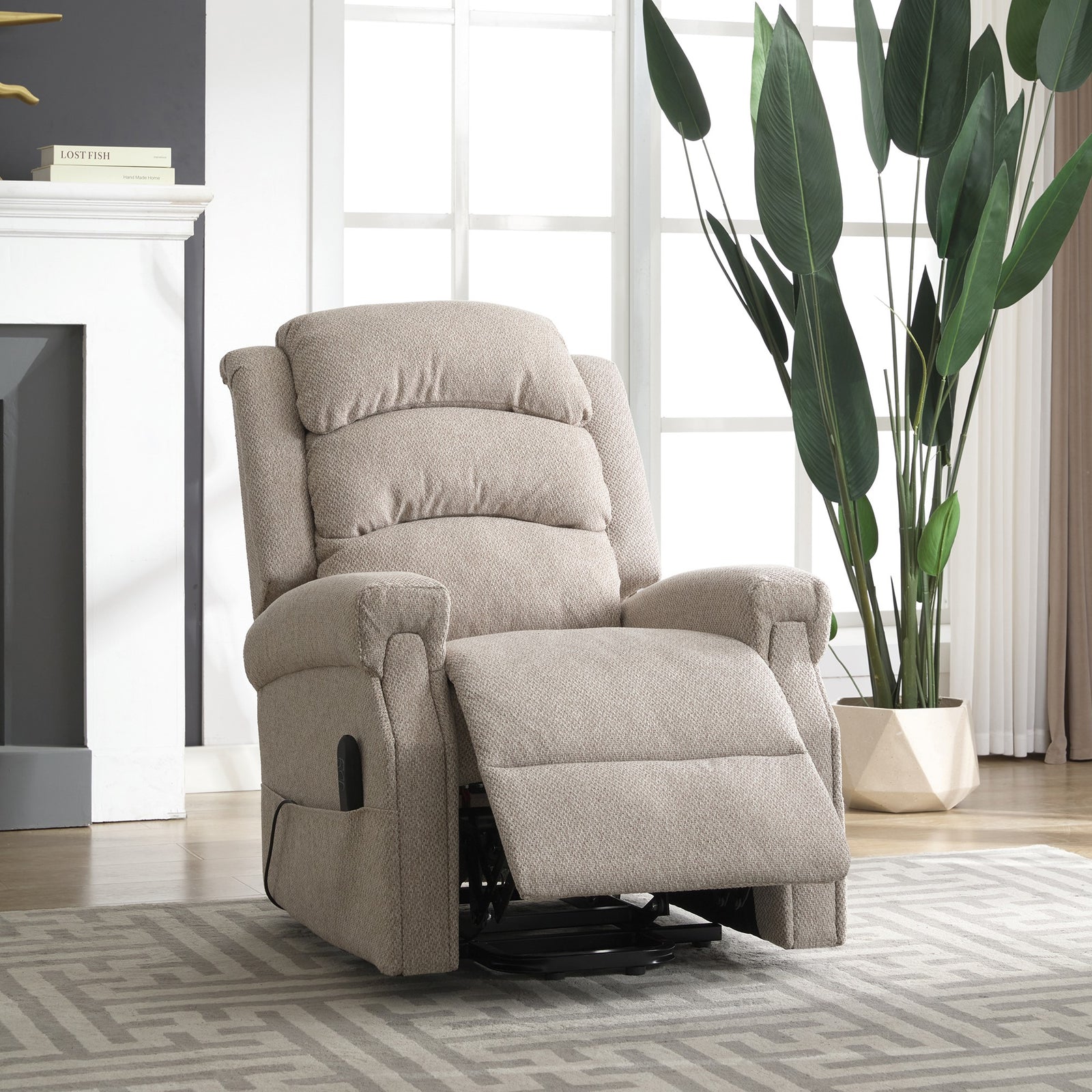 Experience the epitome of comfort and elegance with the eltham dual motor electric riser recliner. This chair seamlessly combines luxury and innovation for ultimate relaxation and style in your living space.effortlessly transition from sitting to standing with the electric lift assist feature, catering to both comfort and accessibility needs.customize your comfort with the dual motor system, independently controlling footrest and recline functions.crafted for durability, it's upholstered in high-quality, textured fabric that's both elegant and built to withstand daily use.the elegant waterfall back design enhances aesthetics and comfort, while the robust wooden frame ensures stability and longevity.relax with integrated massage points in the seat, upper, and lower back, complemented by gentle heat in the lumbar area.enjoy the convenience of our two-man delivery and assembly service for a hassle-free setup.the eltham dual motor electric riser recliner with massage and heat is more than a chair it's a haven of comfort and style for your living space. Order now and elevate your relaxation and elegance to new heights!