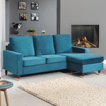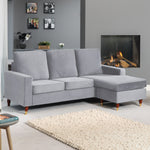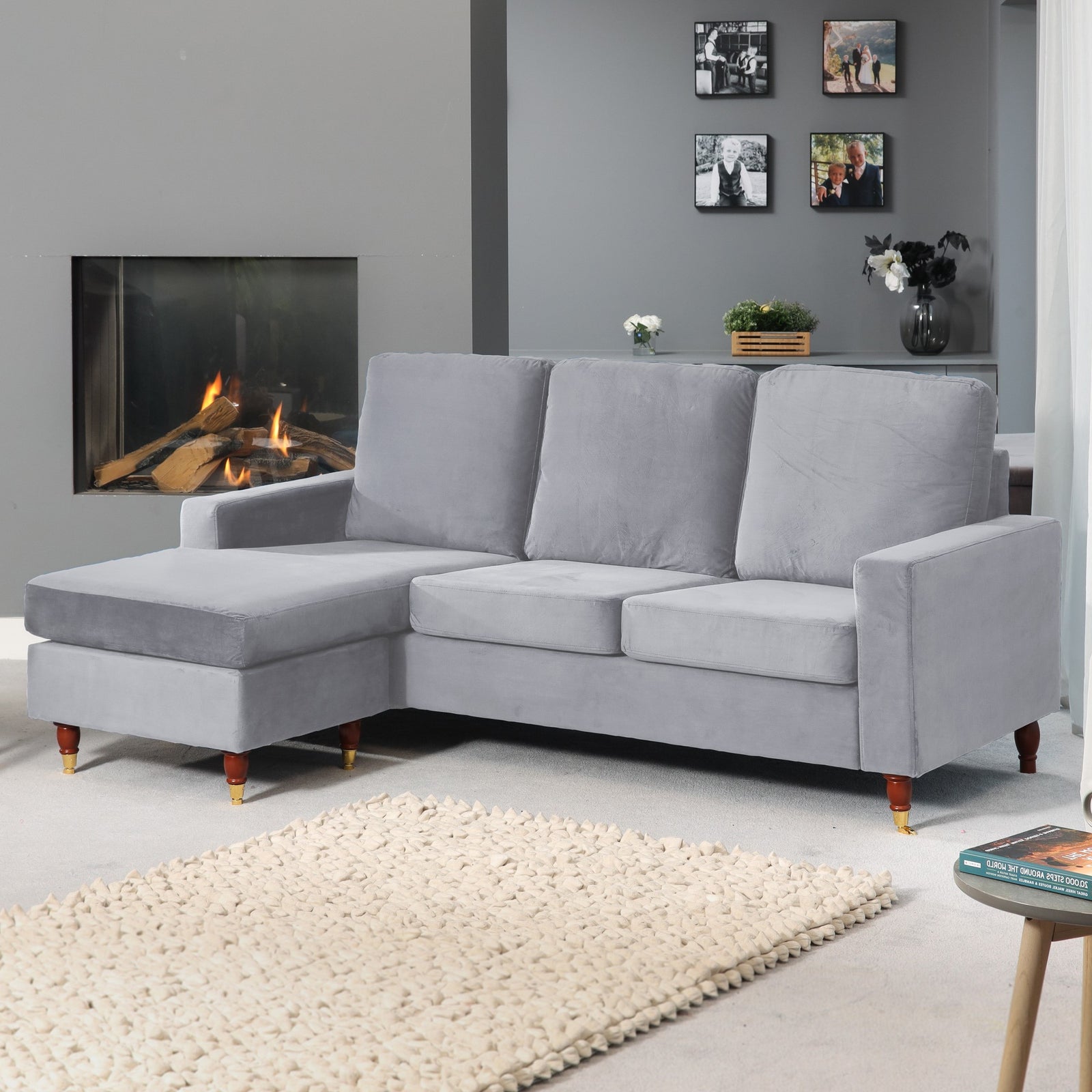 Introducing the hendrick reversible corner sofa - your perfect blend of style and comfort!elevate your living space with the sleek and stylish hendrick reversible corner sofa, designed to add both flair and functionality to your home. Crafted with plump fiber-wrapped foam cushions, this sofa provides luxurious comfort for lounging and relaxing.constructed from solid hardwood, the hendrick sofa ensures durability and stability for years to come. The pocket sprung interior offers superior support, while the dark wooden legs with brass-coloured wheel tips on the front add a touch of elegance to the design.with its compact design, the hendrick reversible corner sofa is perfect for limited space, making it an ideal choice for apartments or smaller living rooms. And for your convenience, it is delivered and assembled by our two-man delivery team, ensuring a hassle-free experience from start to finish.transform your living space with the hendrick reversible corner sofa - where style meets comfort and every seat becomes a statement. Elevate your decor with this chic and inviting sofa today!