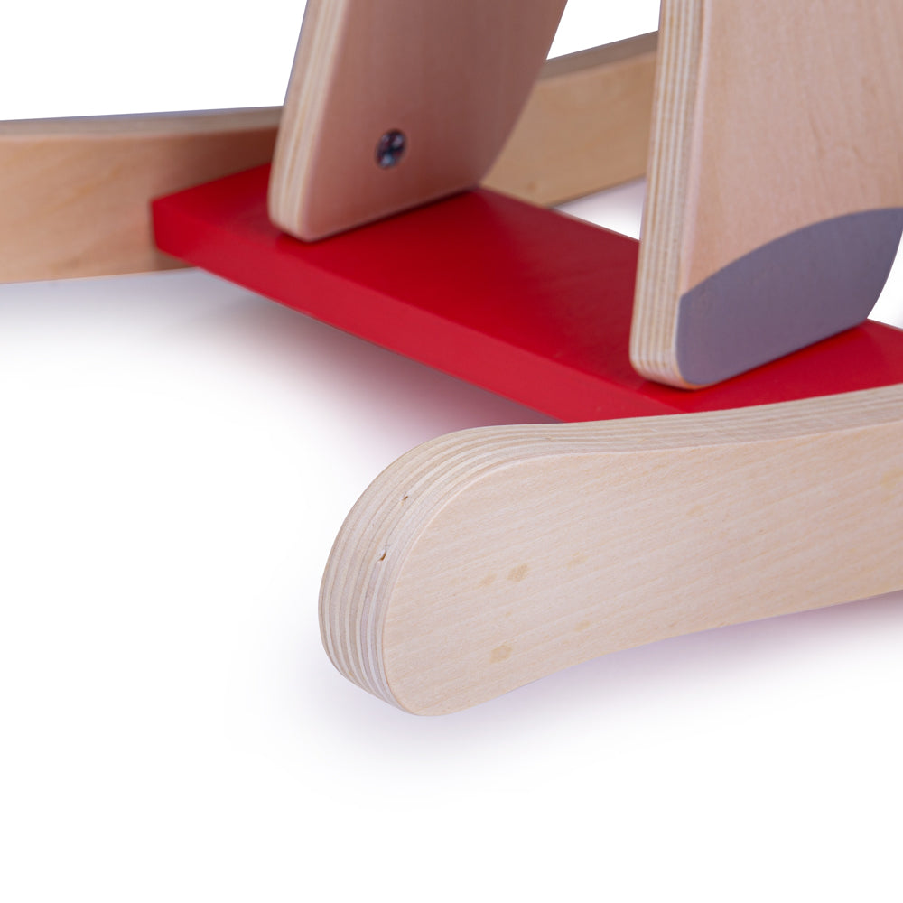 brightly coloured with a natural plywood finish, this delightful wooden rocking horse features a removable safety guard to adapt to the needs of your growing toddler. Always a childhood favourite, rocking horses are great for developing balance, coordination and for strengthening little legs!