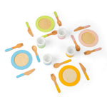 Young entertainers can host a pretend play dinner party for their teddies and soft toys with our 20-piece dinner service set. Made from sustainable wood, this kids dinner set features 4 colourful cups, plates, knives, forks and spoons.