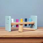 this wooden hammer bench is supplied with a sturdy hammer and features gently curved edges. Little ones can start to use the wooden hammer slowly and get faster as they gain confidence.