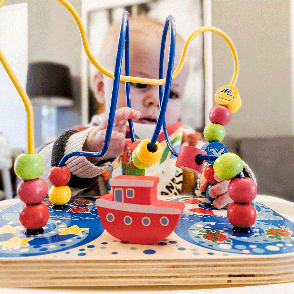 Discover the wonders of the sea with our marine wooden bead maze. Little hands can move the marine-themed beads over, under and across the wire bead frame as they go.