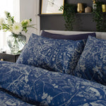 Discover the enhanced comfort and quality of our Secret Garden Navy 200 Thread Count Cotton Rich Bedlinen Duvet set. With a higher thread count, you'll experience a superior feel and print quality, as well as improved washing results every time.