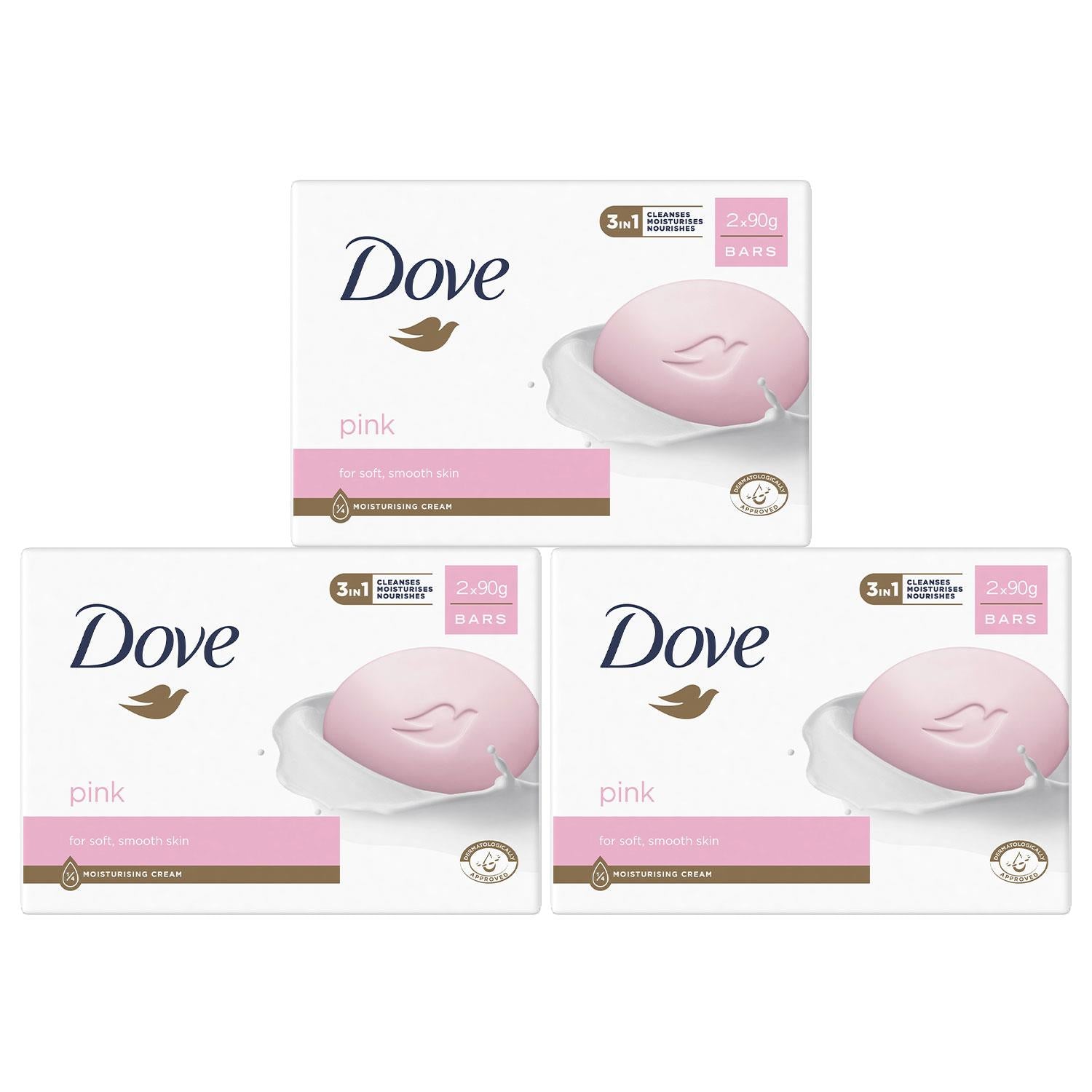 box contains: dove pink beauty cream bar, 2 x 90g