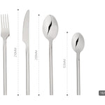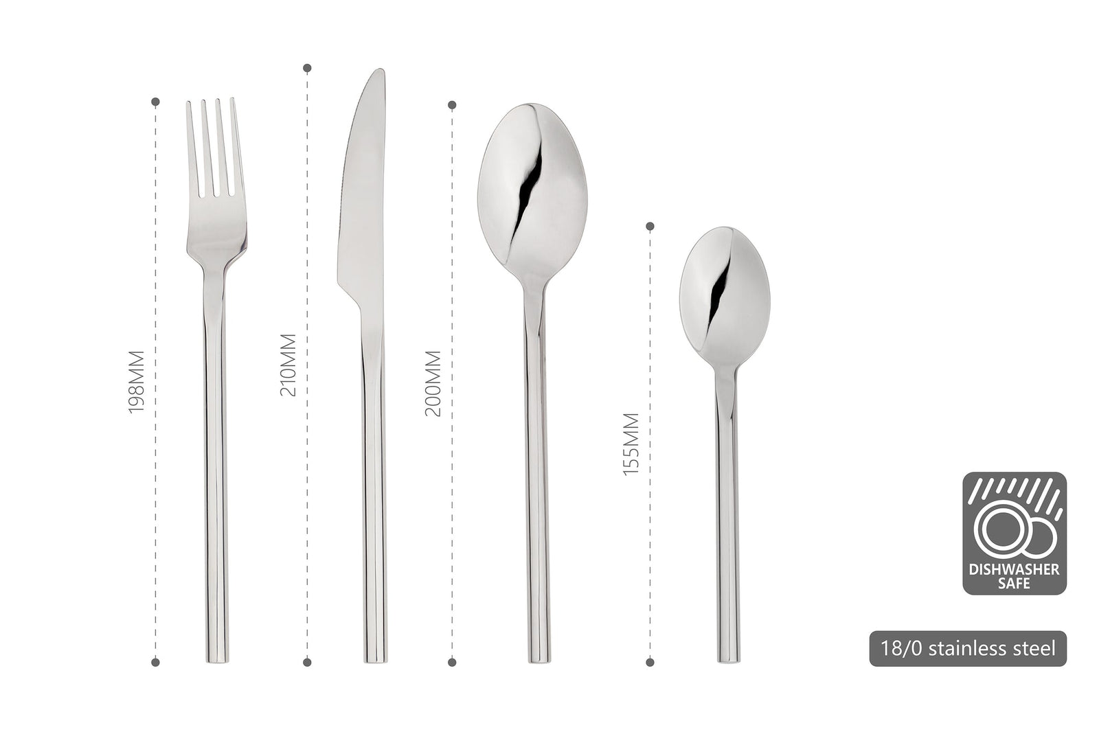 Solid forged stainless steel handle (0.75cm diameter solid steel bar) and made from durable 18/0 stainless steel, the cutlery set is ideal for everyday use. Dish washer safe. Product dimensions: knife: l21 x w1.9 x d0.75 cm fork: l19.6 x w1.9 x d0.75 cm table spoon: l19 x w1.9 x d0.75 cm tea spoon: l14 x w1.8 x d0.75 cm colours: silver 16pcs cutlery set: 4 x knives, 4 x forks, 4 x spoons and 4 x tea spoons for 4 people. Dishwasher safe loose piece in a colour box