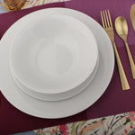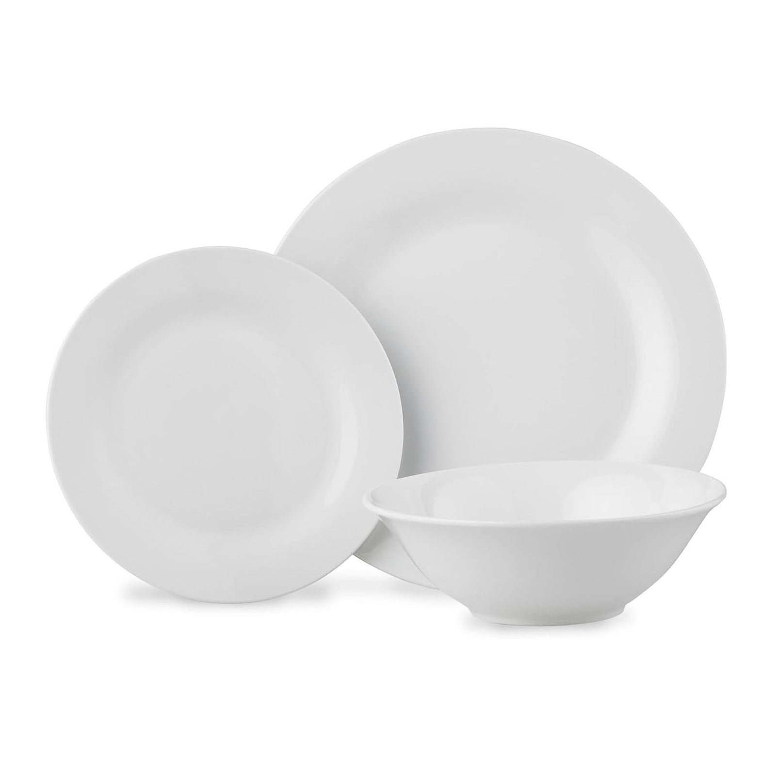 Our 'simple white' porcelain dinner set can be used in a microwave or oven without any problems, just beware of scald. Simple style: its elegant white porcelain finish provides a relaxed eating feeling which can be matched to each decorating style kitchen. Made of superior porcelain fired at high temperature, a reliable strength and durability ensures years of use. Safely goes in microwave, oven and dishwasher. A stain and hot resistant material, this porcelain dinnerware could be easily cleaned with hot water or washing liquid. Dinner plate: 26.7cm/10.5", dessert plate: 19cm/7.5", bowl: 17.8cm/7" 12 piece set: 6x dinner plate, 6x dessert plate, 6x bowl for 6 people; the stackable design won't take much space in your pantry or kitchen. They help maximize space efficiency by taking full advantage of vertial space, keeping your kitchen organized. Material: porcelain number of pieces: 18 color: white pattern: solid