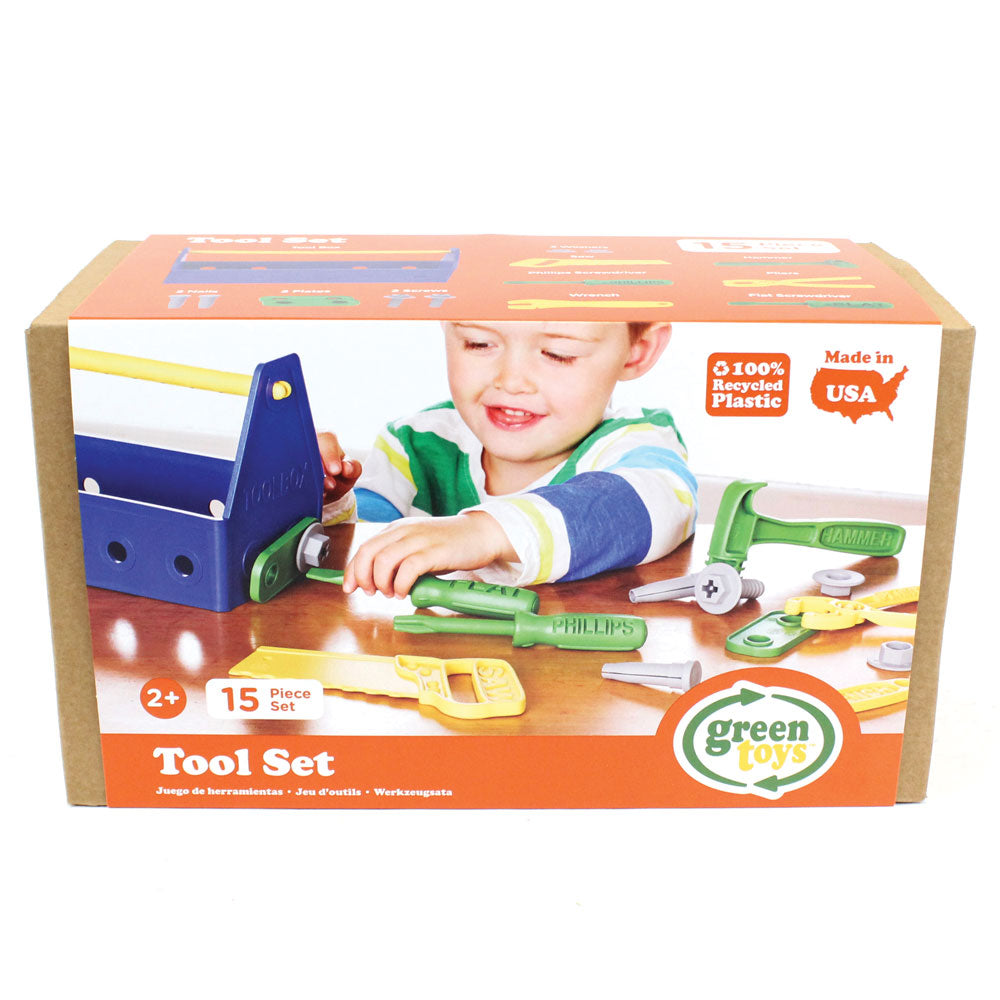 The green toys blue kids tool box set is packed with 15-pieces to help get those diy jobs done - just like grown-ups do.