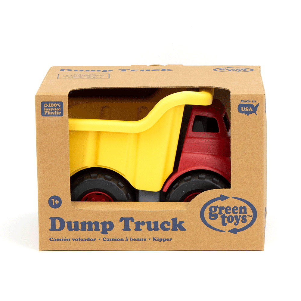 The green toys dumper truck toy is here to save the earth! Use it to haul pebbles, sand, toys and more. Has a lovely red and yellow colourway.