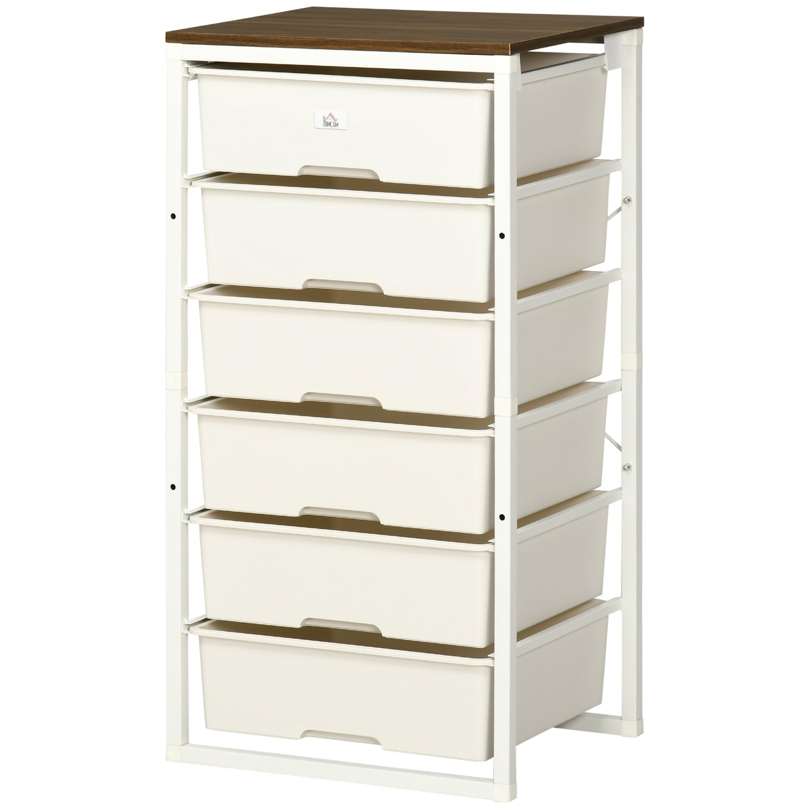 Tallboy chest of drawers, from homcom, made to keep whatever space you want tidy nice and organised. A metal frame for strength, with touch plastic drawers - sturdy formations and easy to keep clean. Six drawers offer plenty of space, plus they're easy to open and close. Complete with a top panel for extra holding - and display - room.