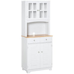 Bring style and space into your kitchen with this homcom kitchen storage cabinet. Crafted from mdf, it's a long lasting addition to your home furniture. Spacious in design, it features a top and bottom cabinet with multiple adjustable shelves, two pull-out drawers and an open wooden countertop, ensuring you have plenty of space in the kitchen. With a smooth surface top to ensure easy maintenance, the kitchen pantry cupboard is finished with an anti-tipping straps on the back for safety.