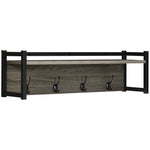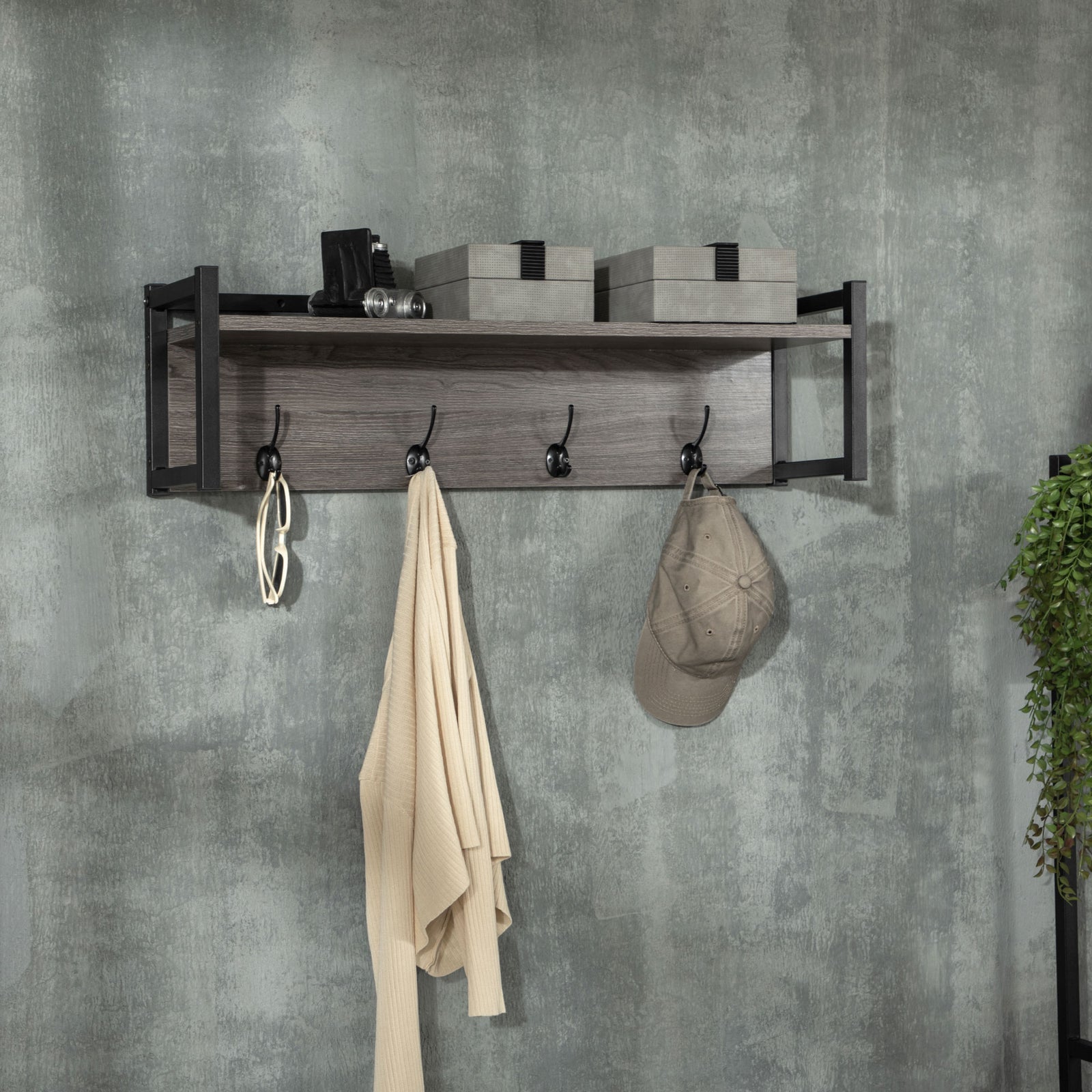 Easy, convenient storage for the hallway, the kitchen and beyond: say hello to this hanging rack from homcom. A metal frame which is strong, it's easy to fix to the wall/surface you choose. Comes with four hooks to hang outerwear, garments, towels etc,, with a top shelf for extra holding room. Natural wood effect with a rustic edge, this piece will look great, no matter where you decide to fix it.