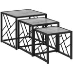 Three times simple, everyday beauty for your living space with this stacking coffee table set from homcom. Consisting of a large, a medium and a smaller sized table, each table is made using a black metal frame for a stable and durable core. The frames, made from metal for strength, come with a criss-cross design on the side for a point of difference. And when done, you can stack them neatly together.