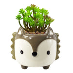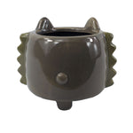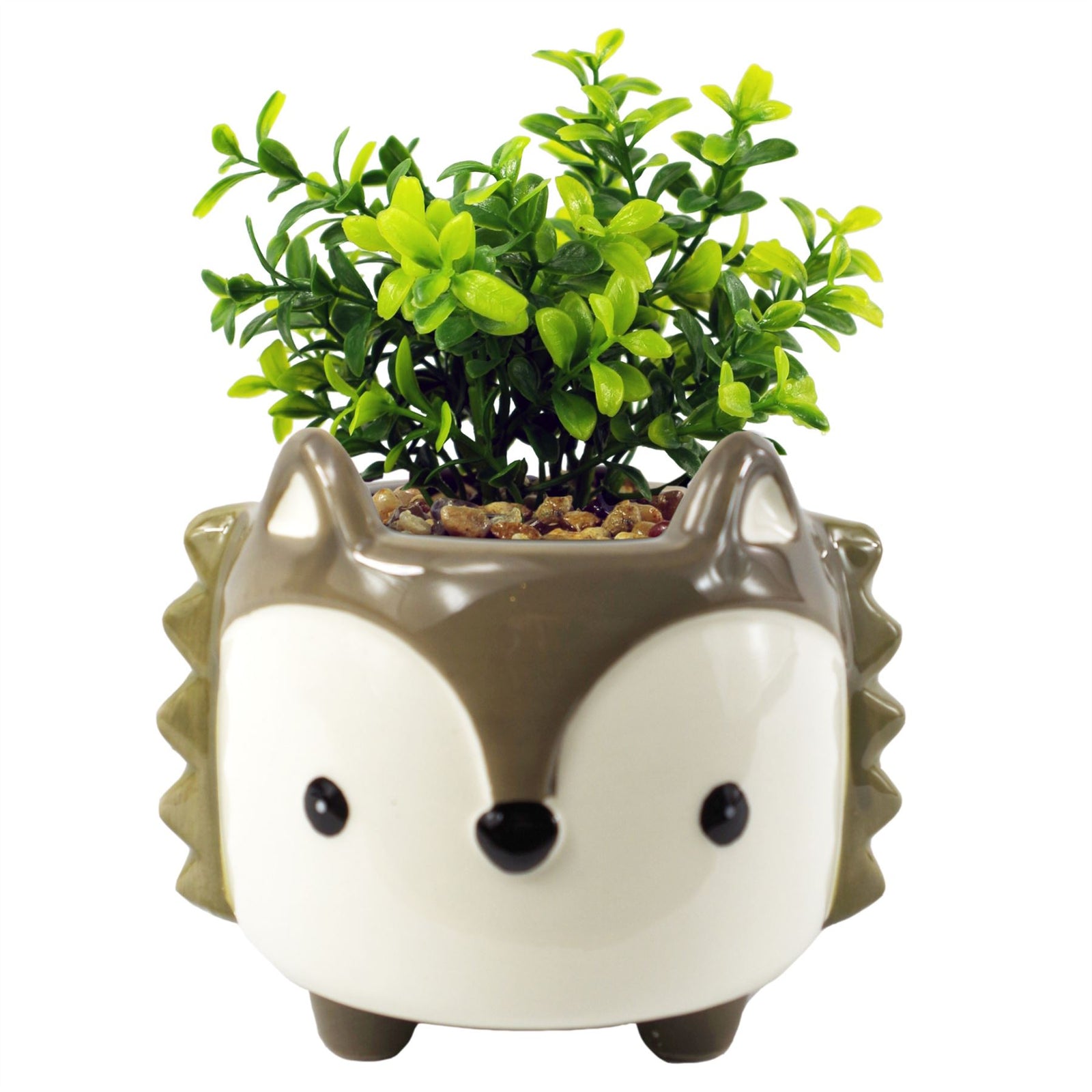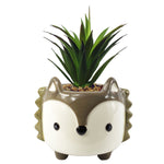 Ceramic grey fox planter. Overall measurements: 10cm (h) x 10cm (w) x 10cm (d). Also available with a choice of pre-potted artificial plants.