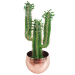 This metal planter measures 22cm wide x 18cm high. It is made of metal with a hammered copper finish. The inner diameter is 20cm (so any of our plants with a pot diameter less than this will fit perfectly). These planters are all hand made in a rustic finish with intentional minor imperfections. As all these planters are hand made there are minor differences from one to another and each one is slightly unique. The price is for the planter only- but we have included some pictures to show how this would look with a couple of our plants to give an idea of size (both plants are 60cm high and are available separately). Intended for indoor use. Can be used outside but needs to be protected from extremes of weather.