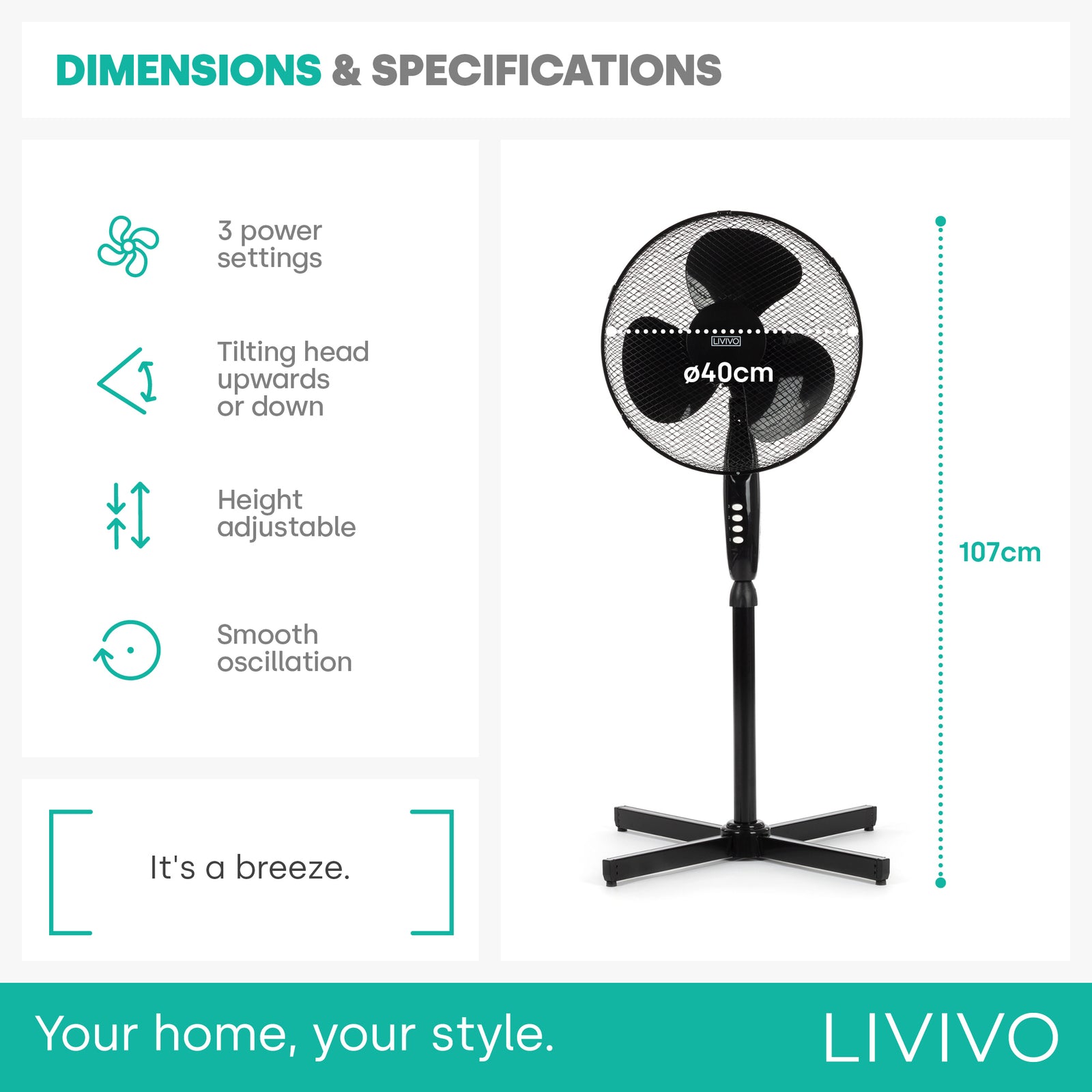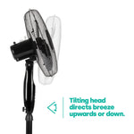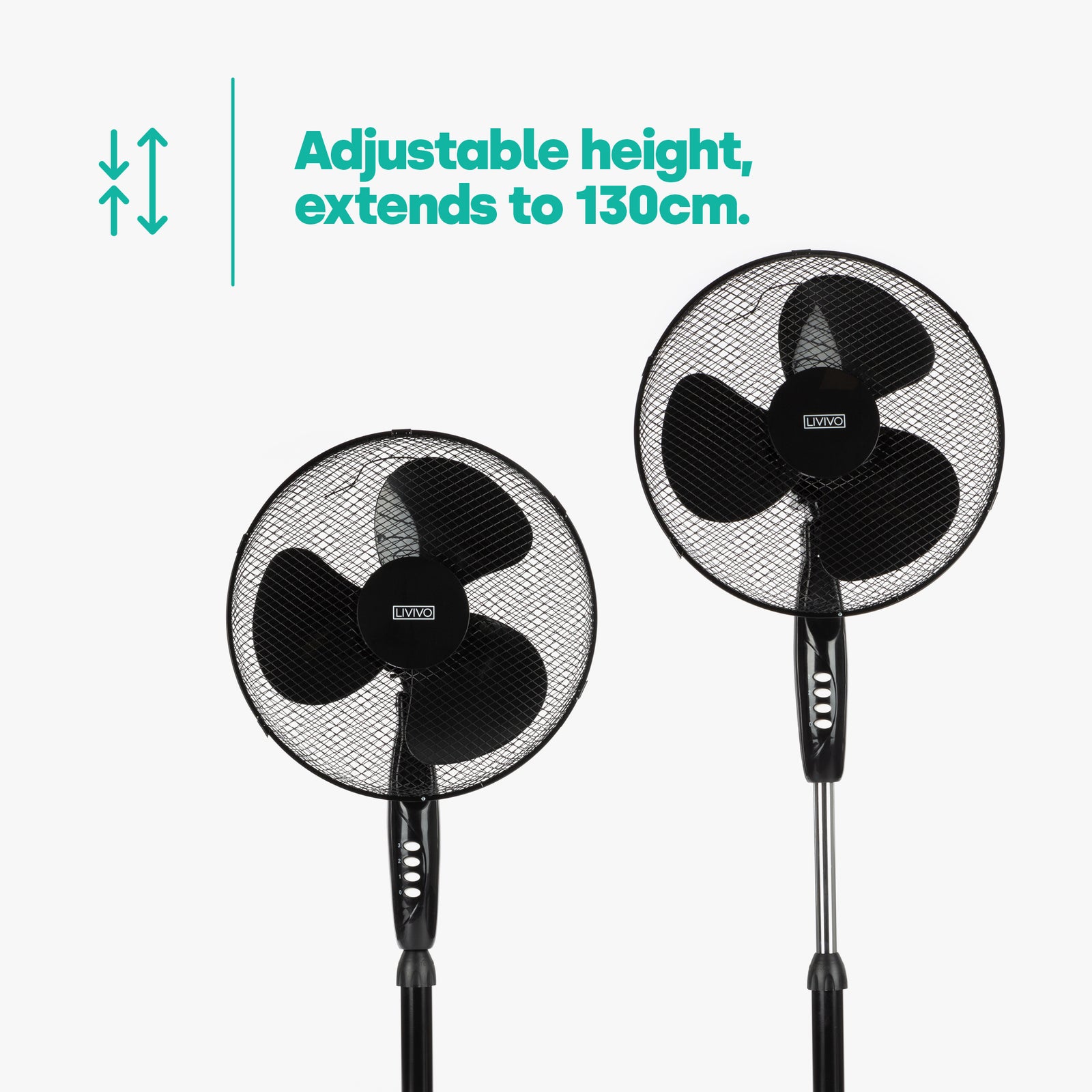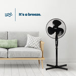 Keep cool this summer with a classic oscillating pedestal fan. Featuring adjustable power, height, and tilt angle. Available in black or grey.