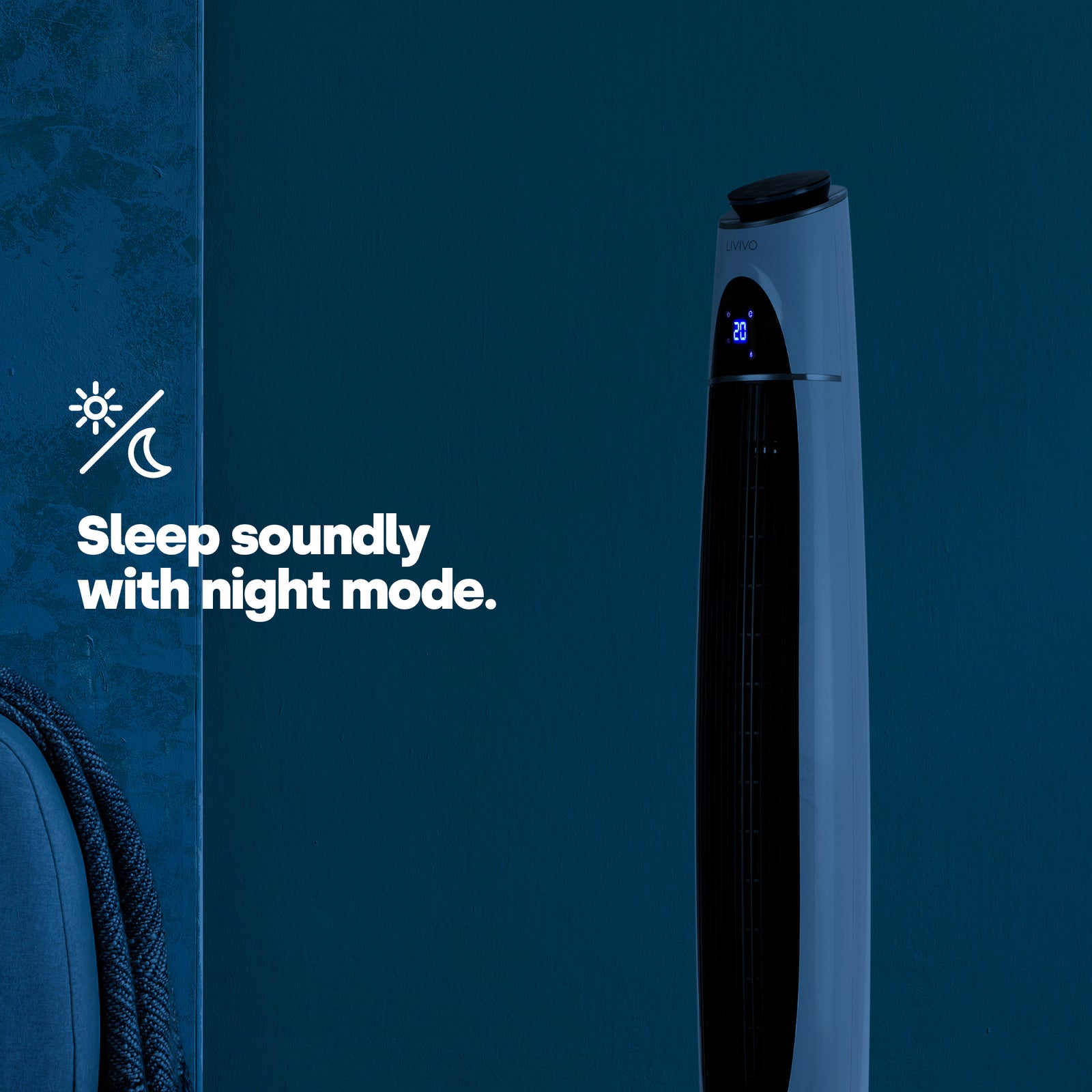 Sleep friendly, night mode reduces fan strength gradually.