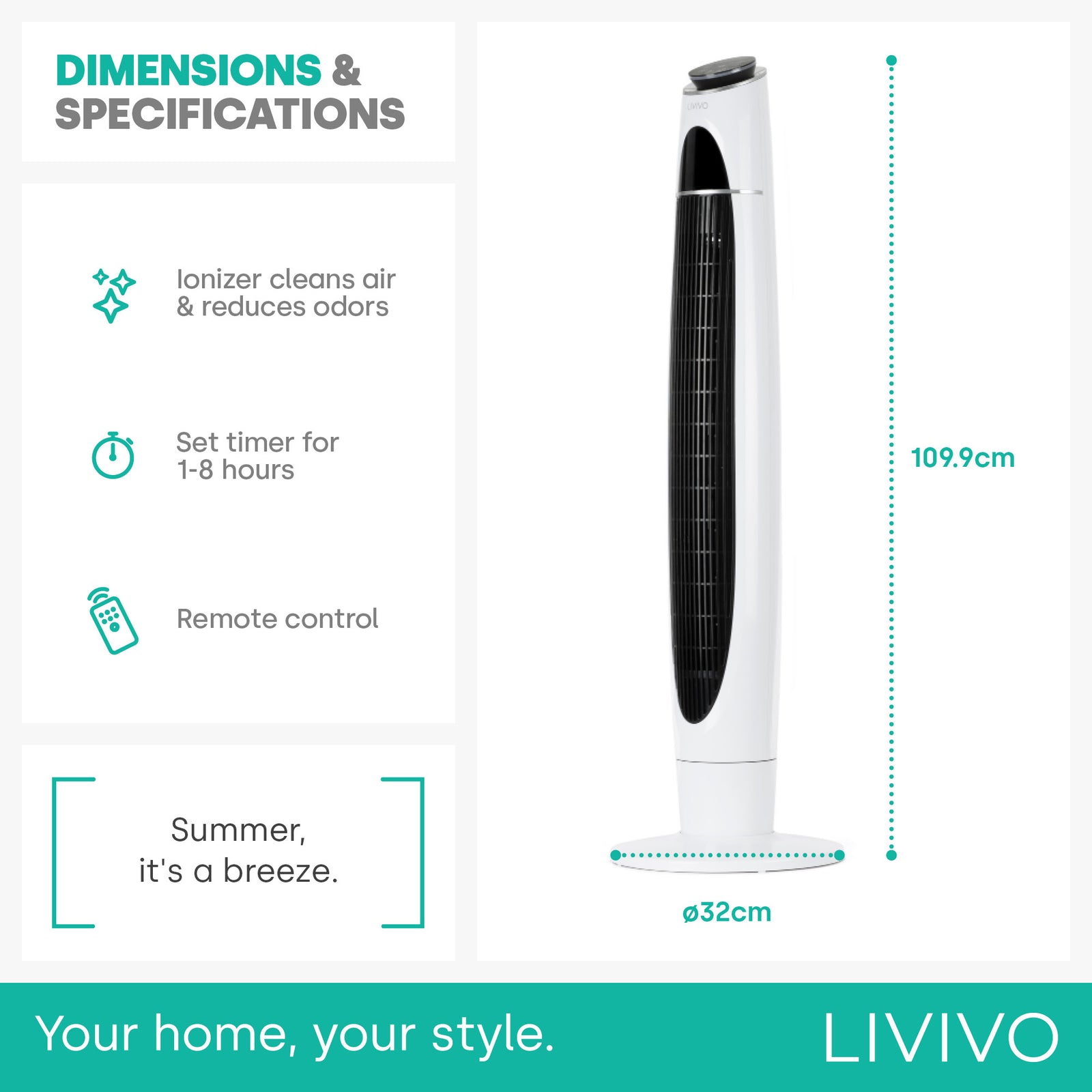 Ioniser function cleans air and helps reduce odours.