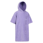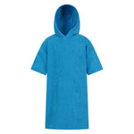 This children's hooded towel is made of 100% cotton fabric. The quick-dry material ensures the towel dries rapidly after use. The soft-touch texture provides a gentle feel against young skin. With a plain design, the focus is on performance and comfort. Most notably, the attached hood is integrated into the towel itself rather than a separate attachment. Sleeves extend to the wrist in a short-sleeved style. Overall this is a simple yet effective towel for bath time or the pool that is pleasing to both children and parents.