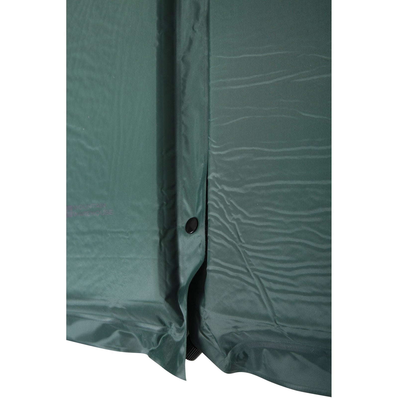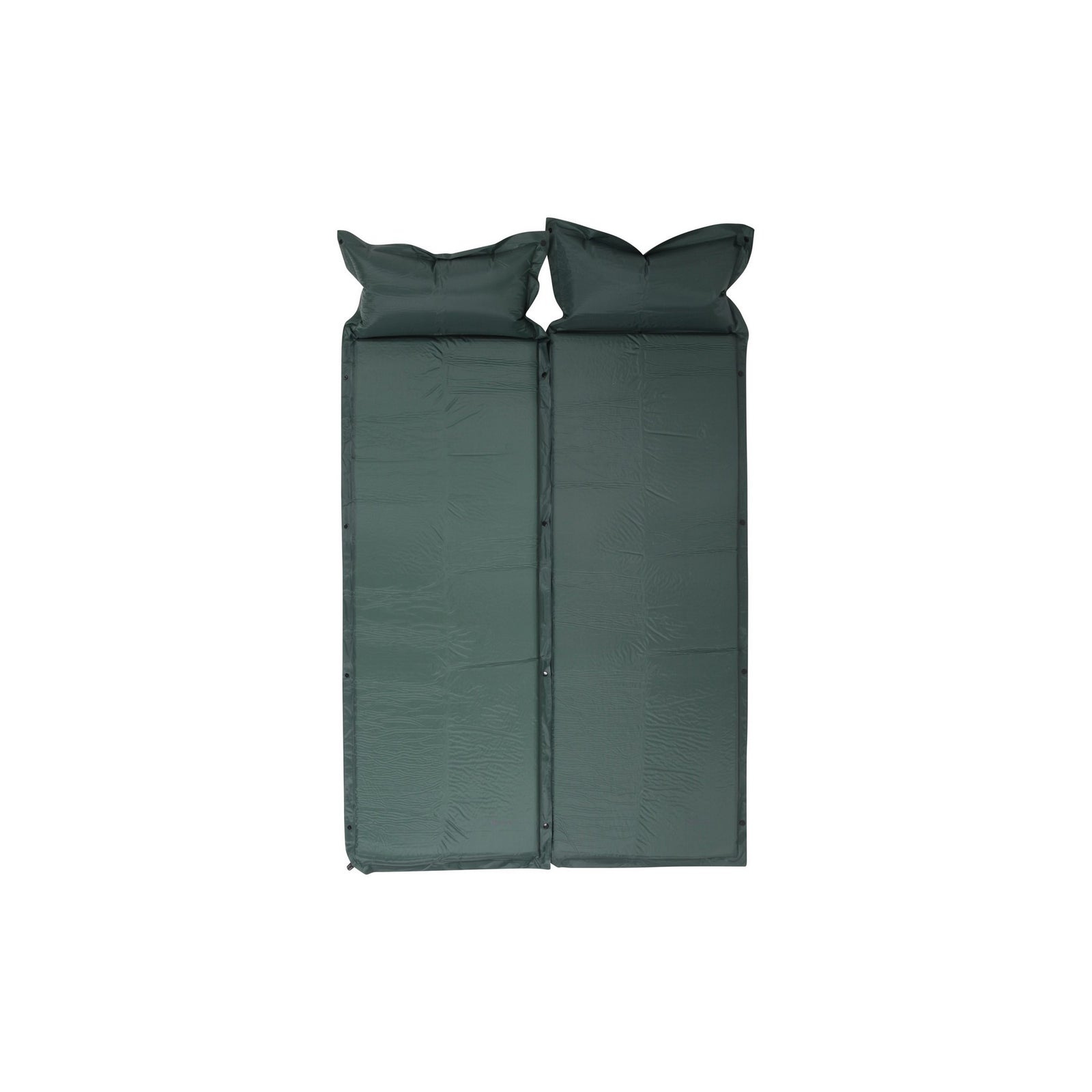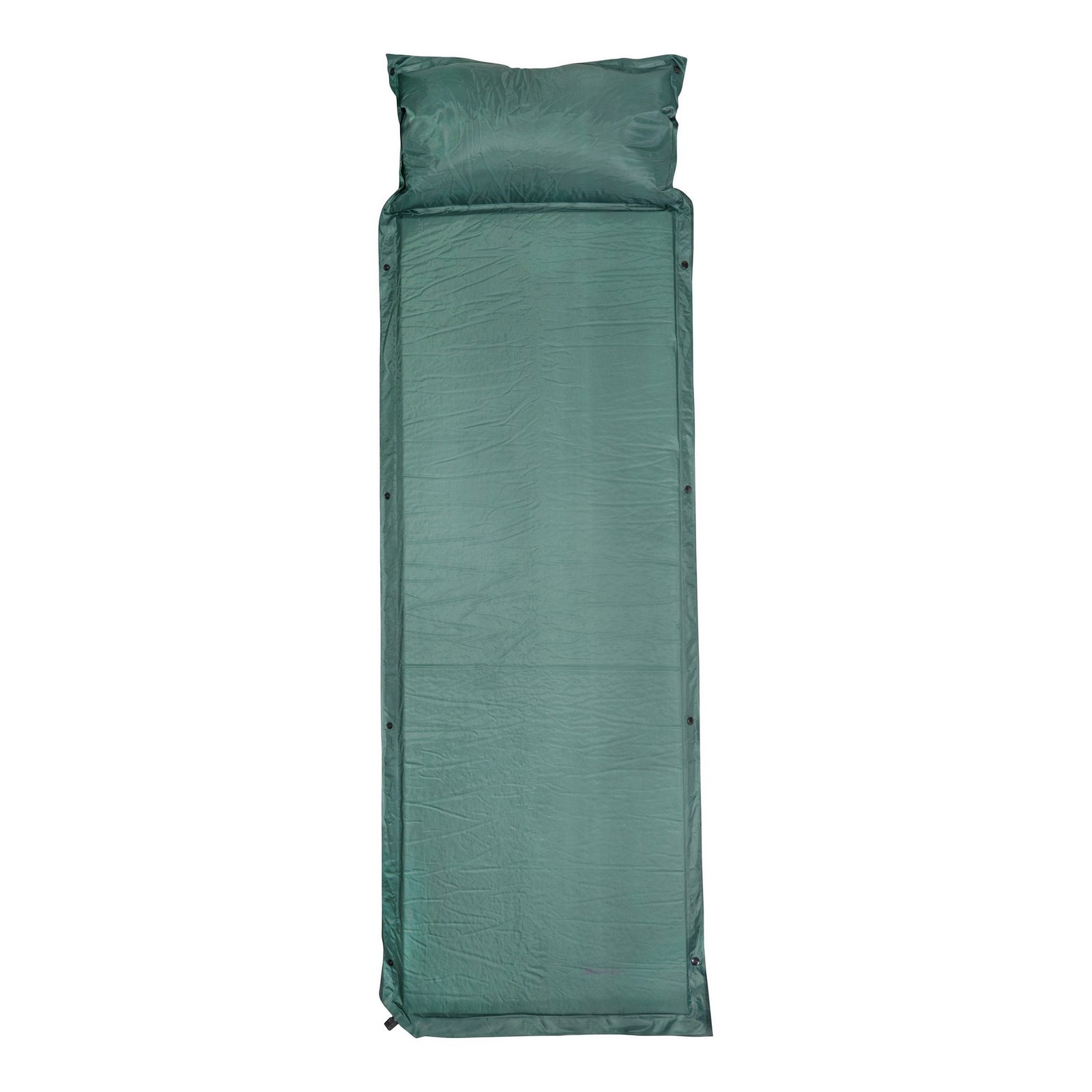 This inflatable mat is 183cm in height and 57cm in length, with a width of 3cm. It contains one pillow, one repair kit and one stuff sack. The mat is compact and uses snap buttons to close.