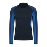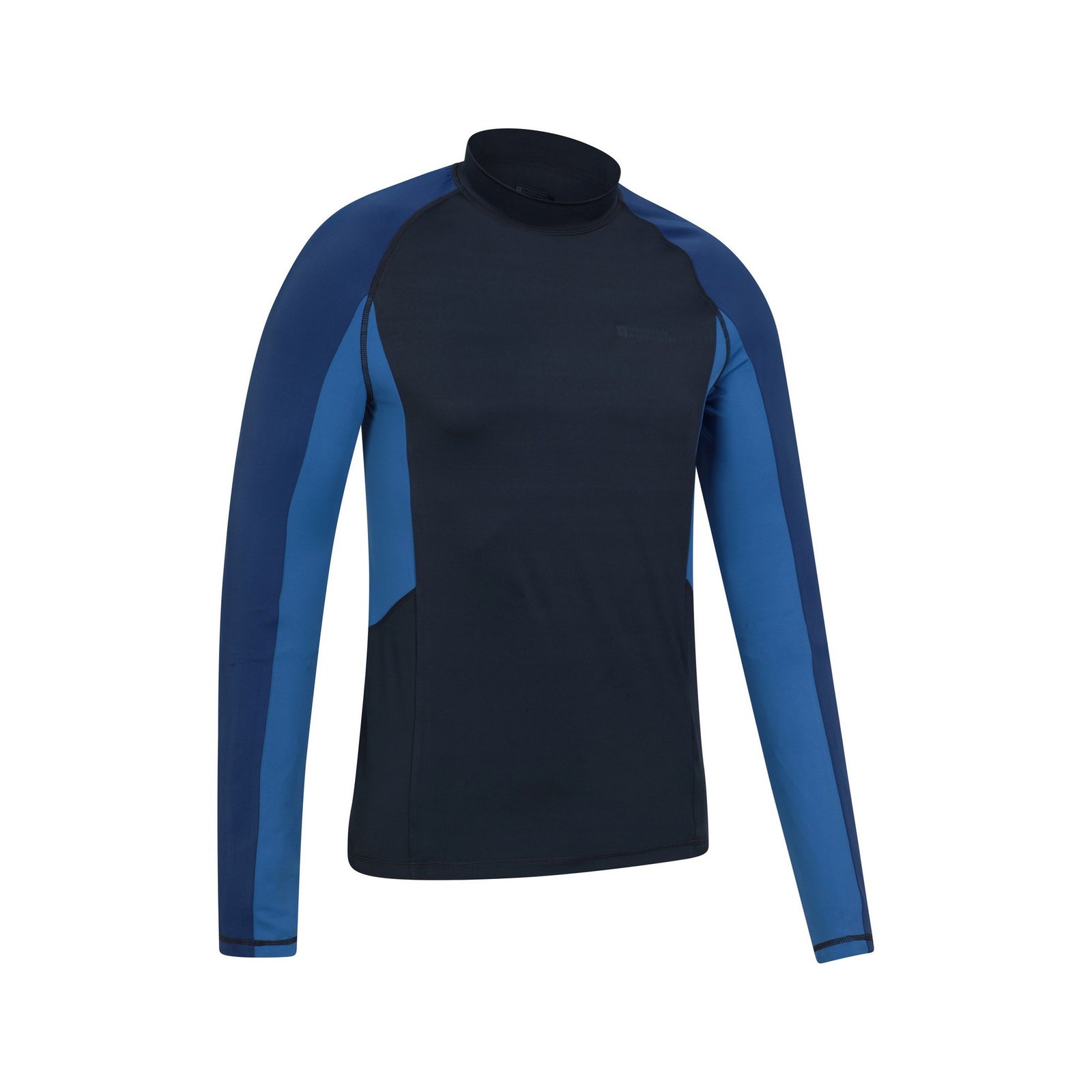 This long-sleeved rash guard from mens cove is designed for maximum freedom of movement in the water. It features a stretch fabric construction for an easy, comfortable fit. The garment has a standing collar neckline and pulls over the head for easy dressing. Contrast side panels and flat seams prevent chafing on the skin. The fabric is lightweight and quick-drying for an enjoyable aquatic experience. It also offers upf 50+ sun protection for extended sun exposure. Additionally, this rash guard is made from recycled materials as part of mens cove's sustainability initiatives.