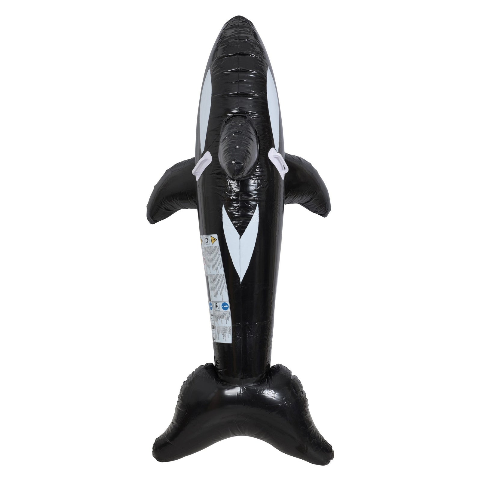 This product description is for a pool float in the design of a whale. It has a hand grip for users to hold on to. It is important to note that the float is supplied in a deflated state and should not be left unattended in the water unattended for safety reasons.