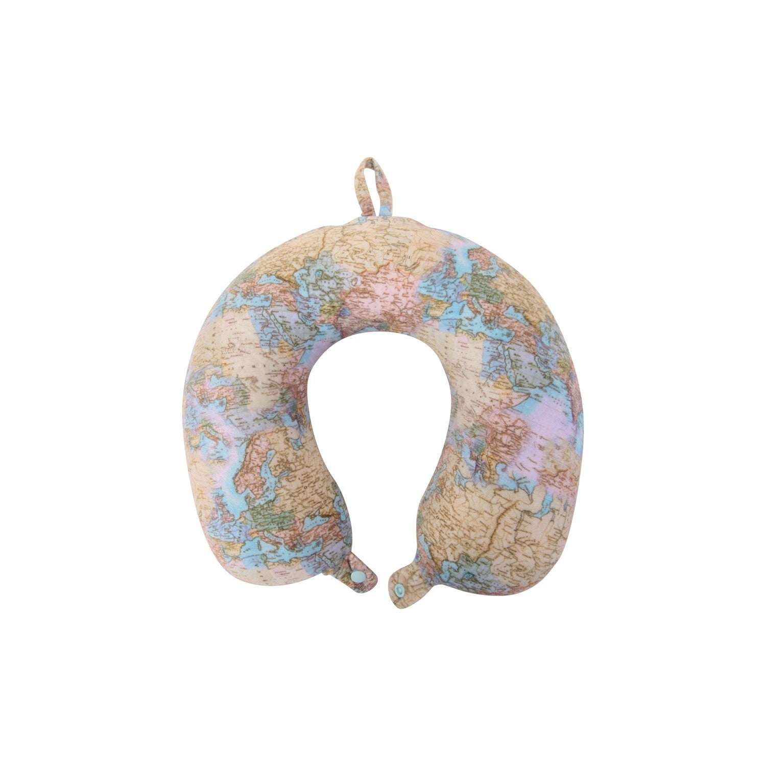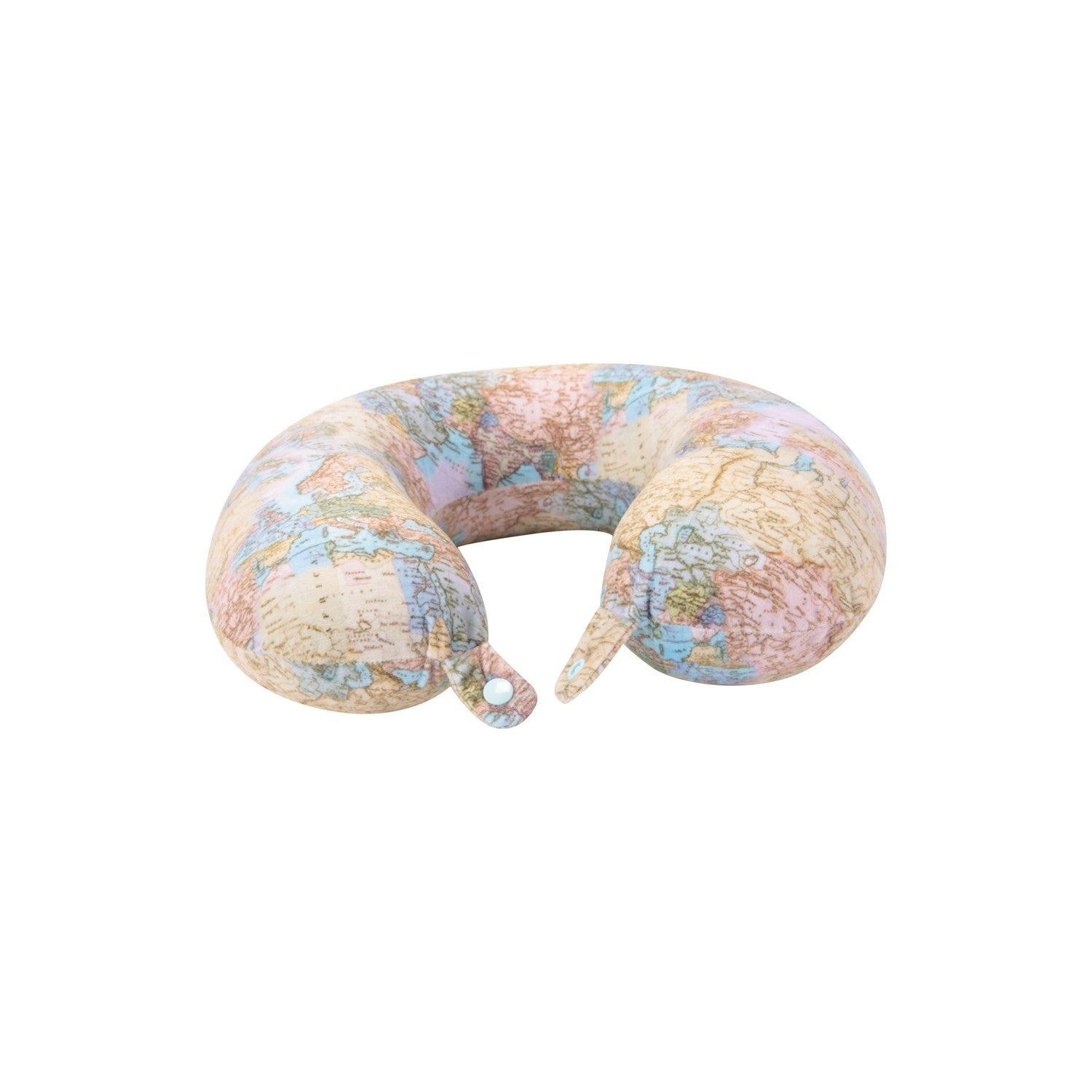 This product is a travel pillow featuring a world map pattern. It is constructed from memory foam, which is a lightweight, soft-touch material designed for comfort. The pillow's filling is memory foam to allow it to maintain its shape for user support. Its outer fabric is 100% polyester and displays a graphical world map design. Overall, this pillow aims to provide comfortable neck support for travellers thanks to its ergonomic memory foam construction and decorative world map pattern.