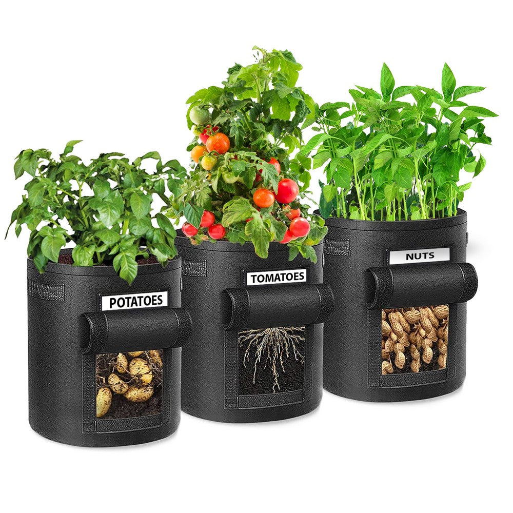 This high-quality grow bag is suitable for cultivating vegetables. It is made from non-woven fabric and features two reinforced carry handles for easy transportation. A flap provides simple access to the interior. The double-stitched construction ensures it is durable and waterproof. It can be reused time after time. A transparent window allows the growth progress to be monitored visually. With a 10-gallon capacity, the bag measures 42cm by 33cm, offering ample space for plant cultivation. Each bag also has a name tag so individual vegetables can be easily identified.