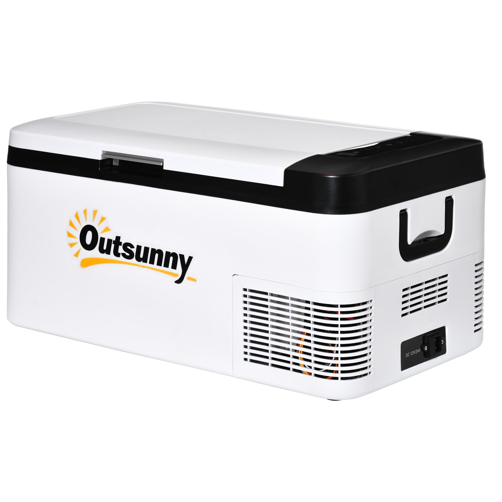 Keep food, drinks, and snacks ice cold or frozen with this portable refrigerator from outsunny, whether you're spending the day at the beach, going camping with friends, or enjoying a nice picnic outside. The 18l 12v fridge for campervan that can be plugged in and taken with you wherever you go to maintain an ice cold down to -20℃. And with a digital temperature display that lets you dial in the electric thermostat on the go, you can use it to match your specific needs quickly and easily.