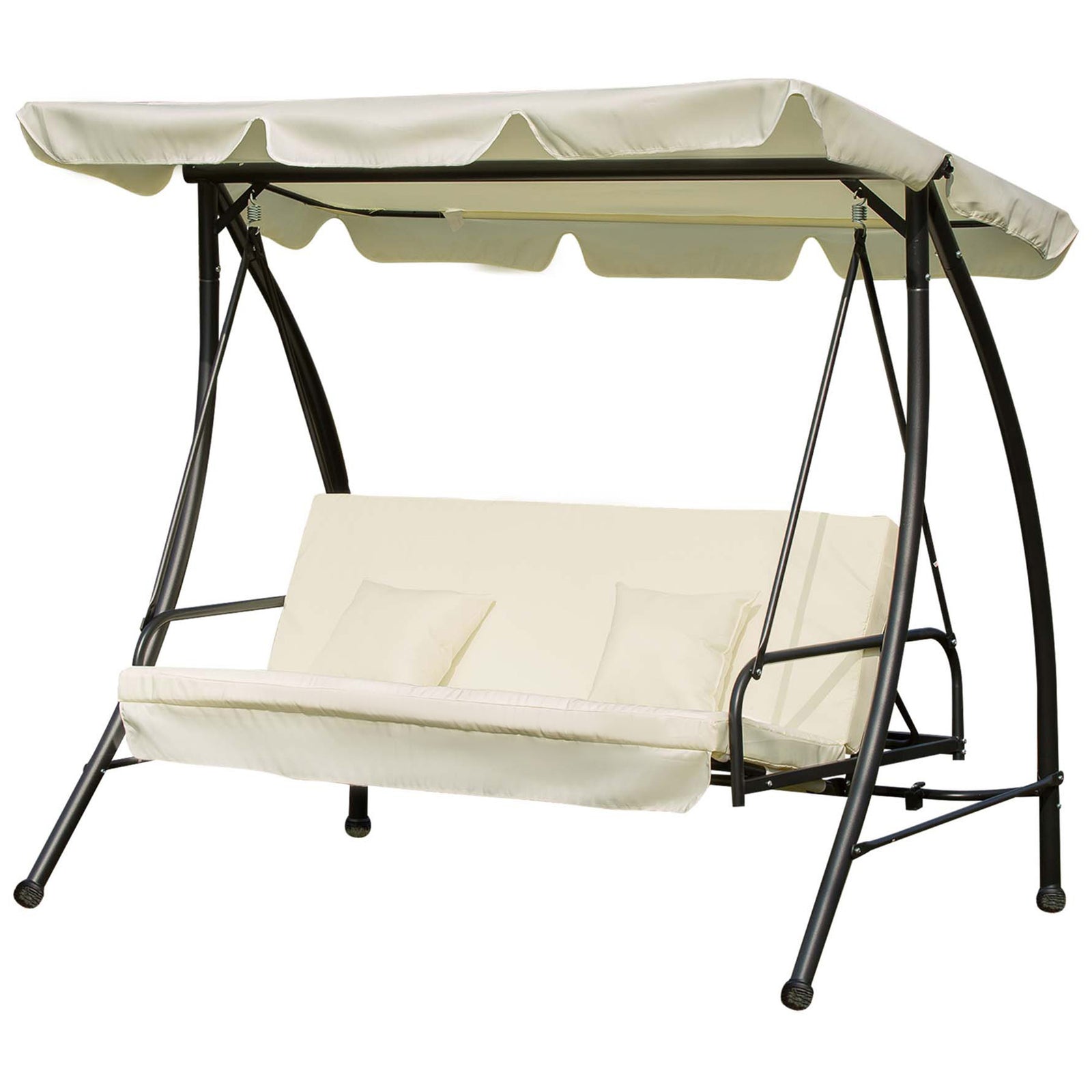 Make the most of the sunny days with this 2-in-1 convertible swing bench from outsunny. Big enough to fit three people, it easily converts into a bed with an adjustable backrest to suit you and a canopy to protect you from hot sun. Swinging garden chair sits on a steel frame to ensure many years of use. With two pillows supplied to provide even more comfort, there's no better way to enjoy to sit down and relax as the sun shines on a hot summers day.