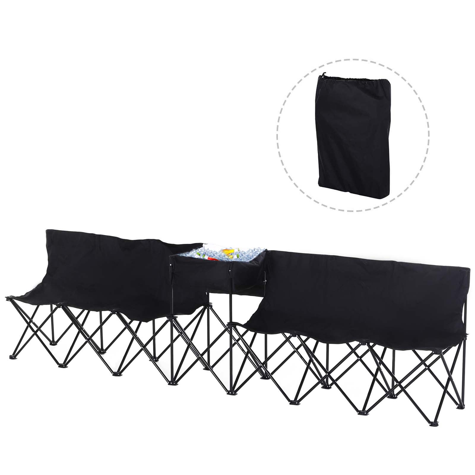 Keep multiple people seated at once during outdoor trips, bbqs and festivals with this folding bench from outsunny. Using steel for the frame to provide enduring strength and reliability whilst being used, it is made into a long 306cm design, formed of six oxford cloth seats which all measure 44cm x 41cm – giving every person plenty of room to sit comfortably. Cross-over legs on each leg help provide a point of balance to ensure the whole unit stays in place, regardless of how people are spread out. Foldable and lightweight so you can pick this up and store it away easily, this chair is finished with a cooler box in the middle to keep drinks and snacks nicely chilled. material: steel, oxford