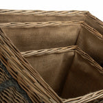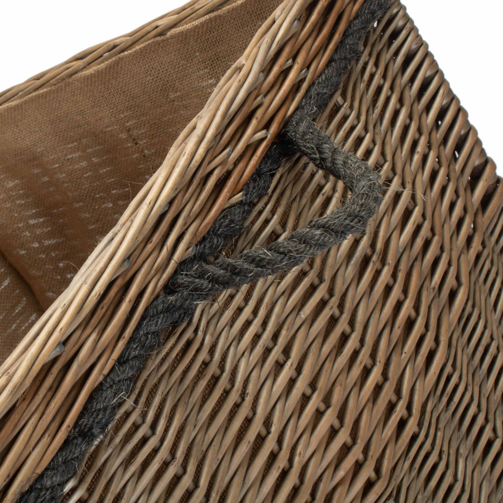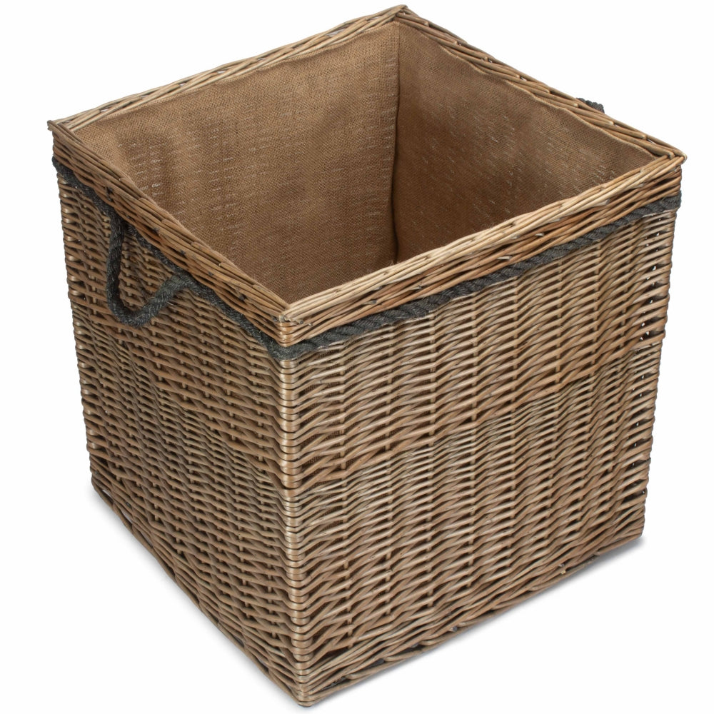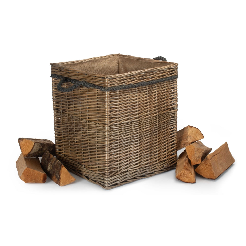 Antique wash square storage log basket is a must-have for anyone looking to add a touch of rustic charm to their home. This wicker log basket boasts a beautiful antique wash willow construction, giving it a timeless and elegant look. The addition of rope handles and a hessian lining completes the aesthetic, making it a stylish and practical storage solution.