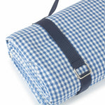measuring 140cm deep, 5cm high, and 280cm wide, this blanket provides ample space for you and your loved ones to relax and enjoy a meal together. The classic blue and white gingham pattern adds a touch of charm to your picnic setup, making it both stylish and functional.