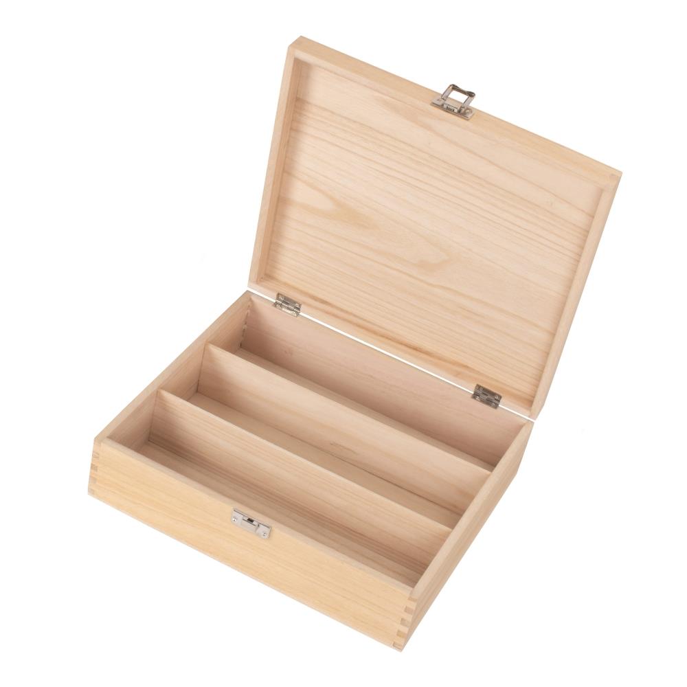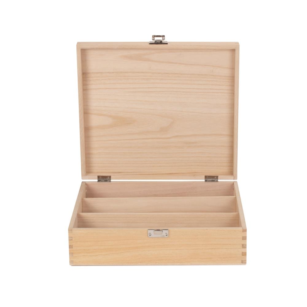 the box features a clear varnish finish that enhances the natural beauty of the wood, giving it a sleek and polished look. Please note that colours and finishes may vary due to the natural variations in the wood.