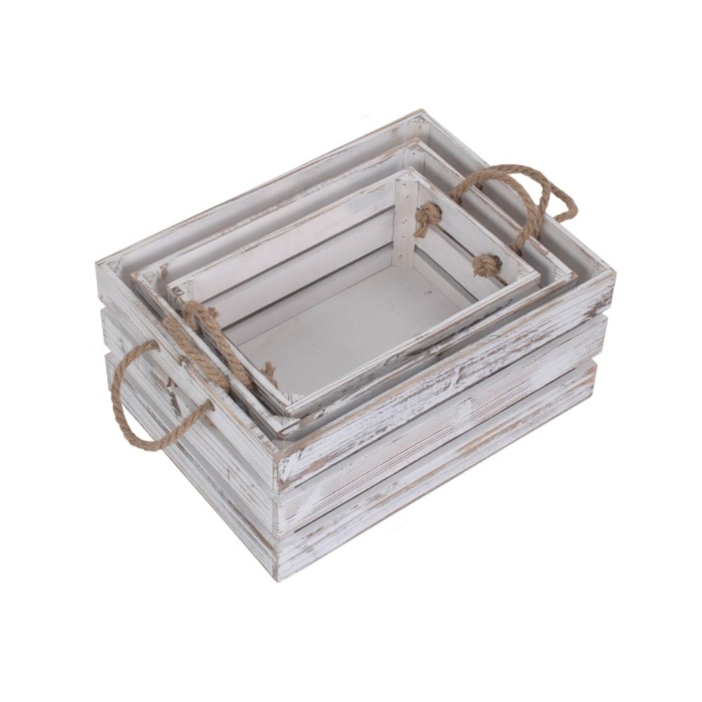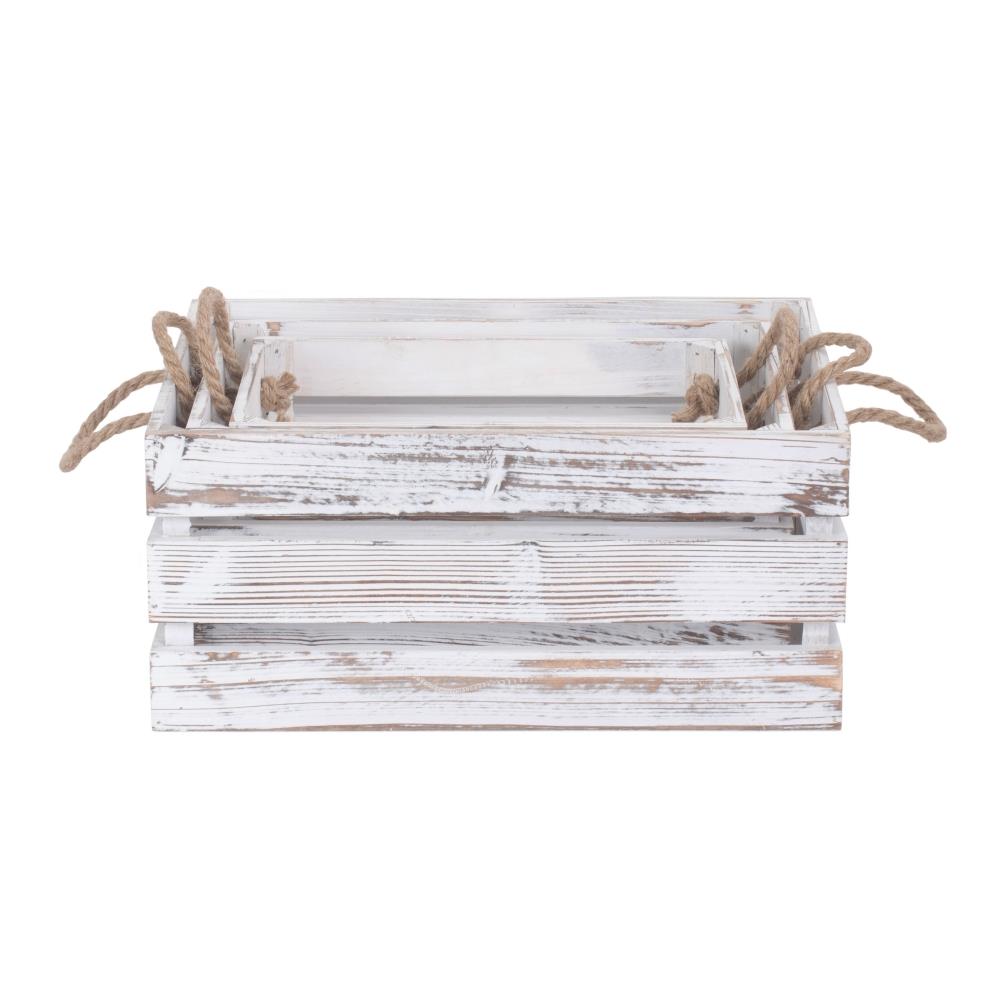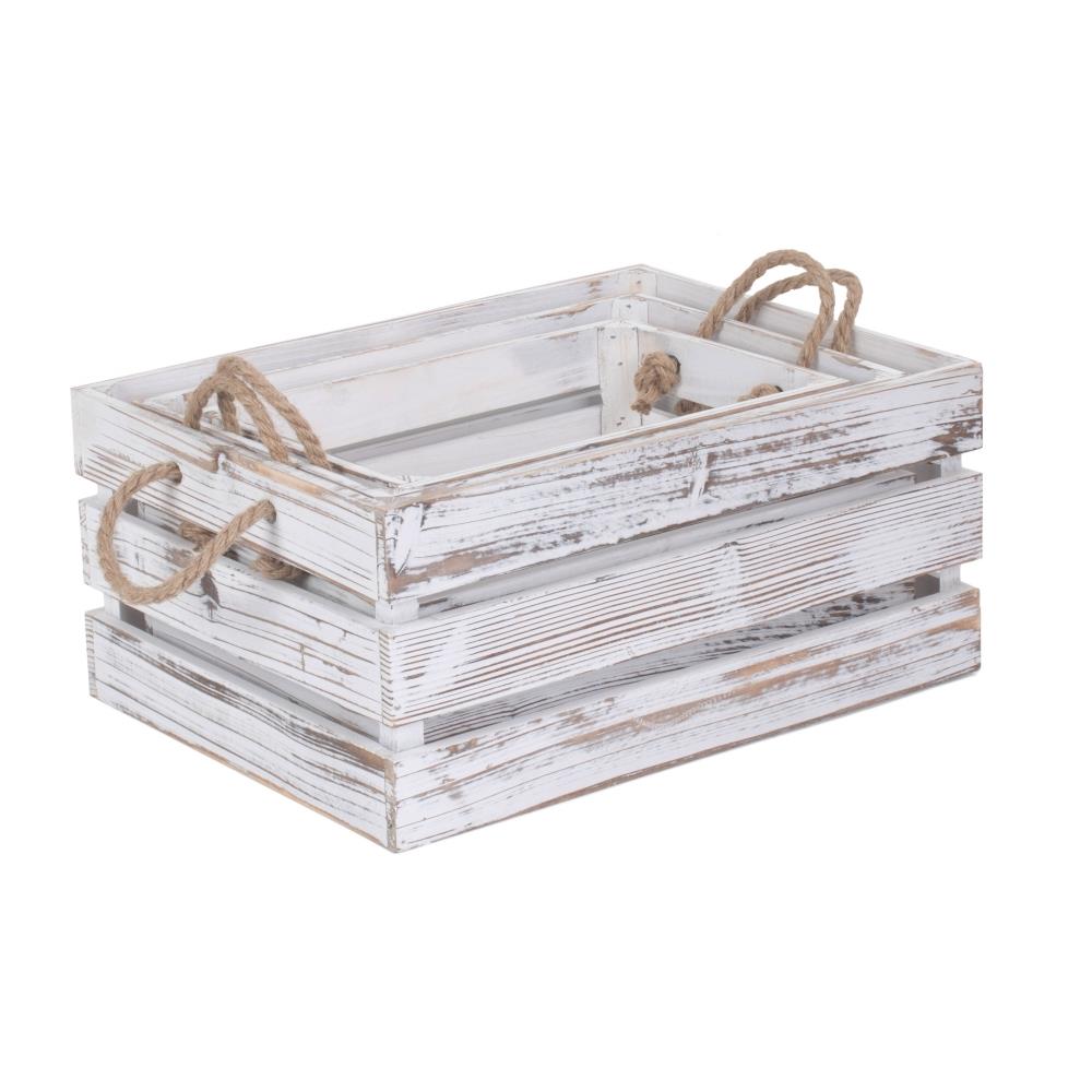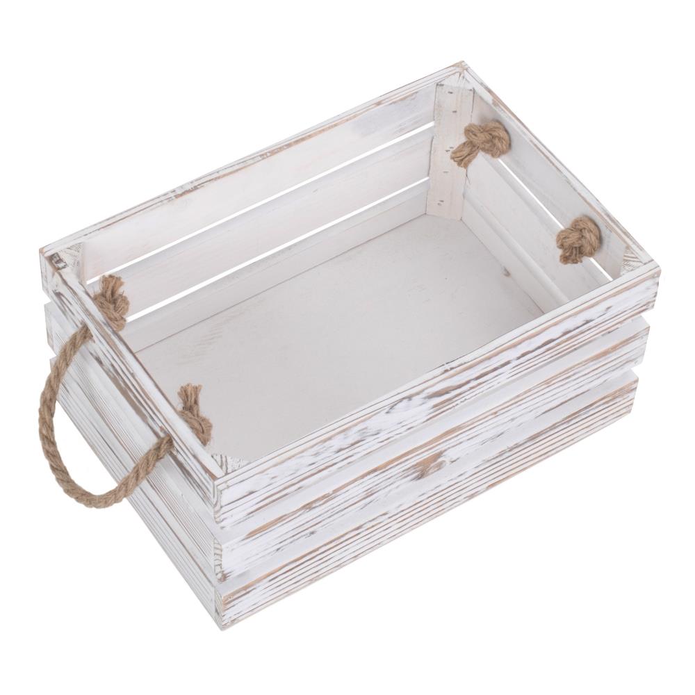 available in three sizes - small, medium, and large - this wooden storage box is perfect for organizing and storing a variety of items. Whether used for storing blankets, books, or even as a decorative piece on its own, the distressed white rope handled wooden crate is sure to add a touch of charm to any space.