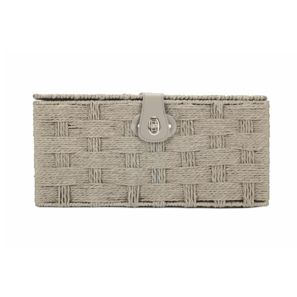 Twisted paper rope storage basket, a versatile and practical solution for all your storage needs. Crafted with twisted paper woven onto a sturdy black metal frame and accented with faux leather hinges, this storage basket is not only attractive but also incredibly strong - much stronger than you may think.