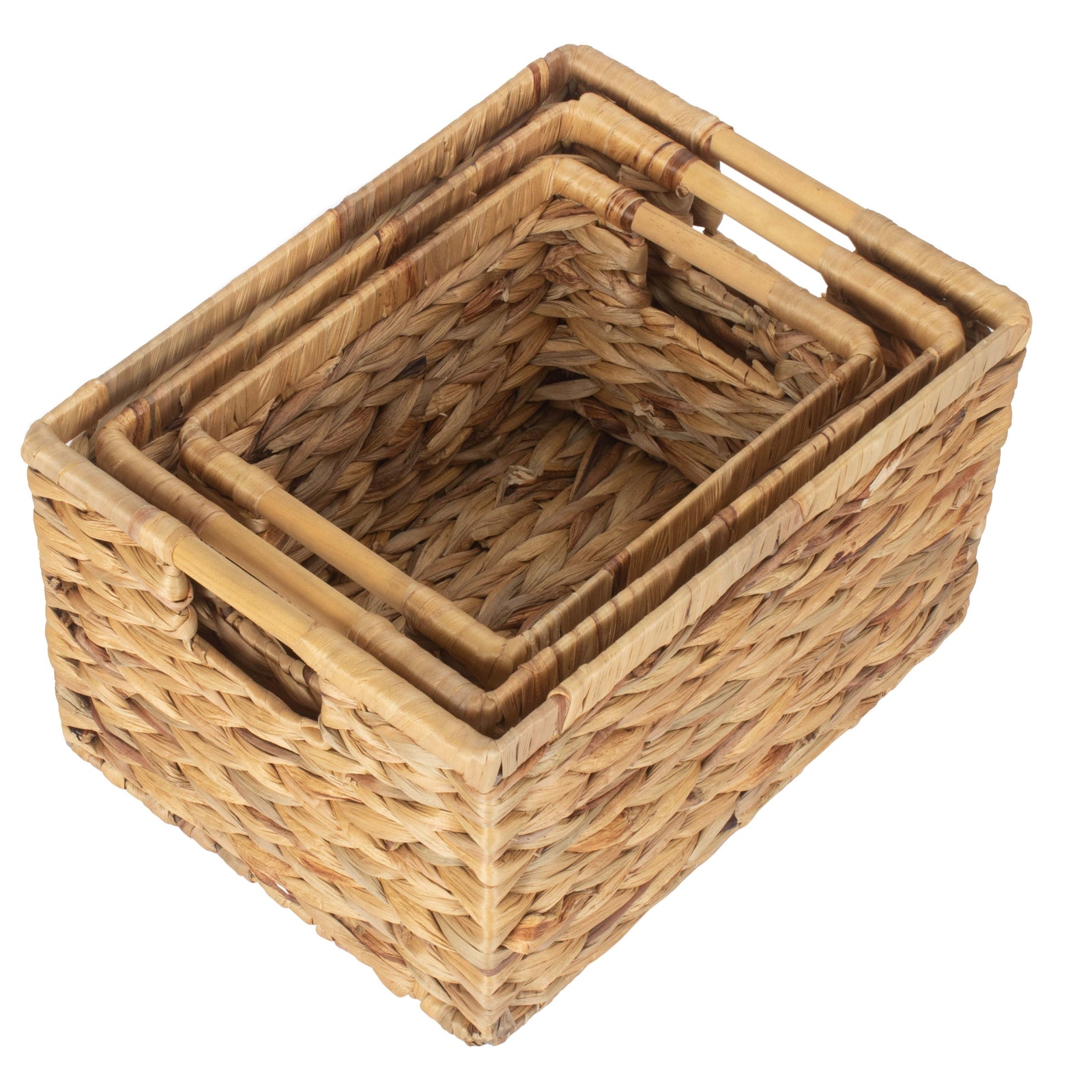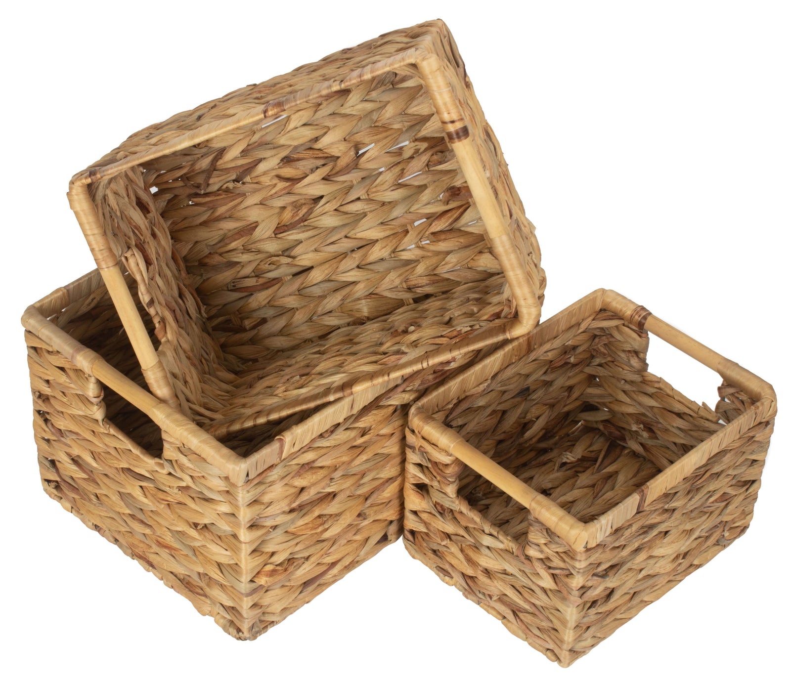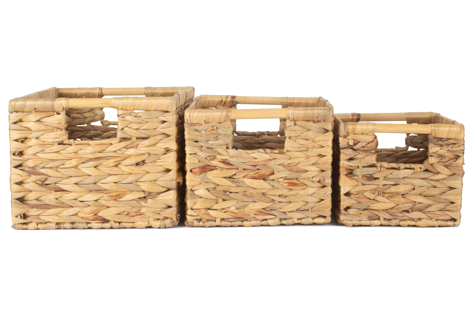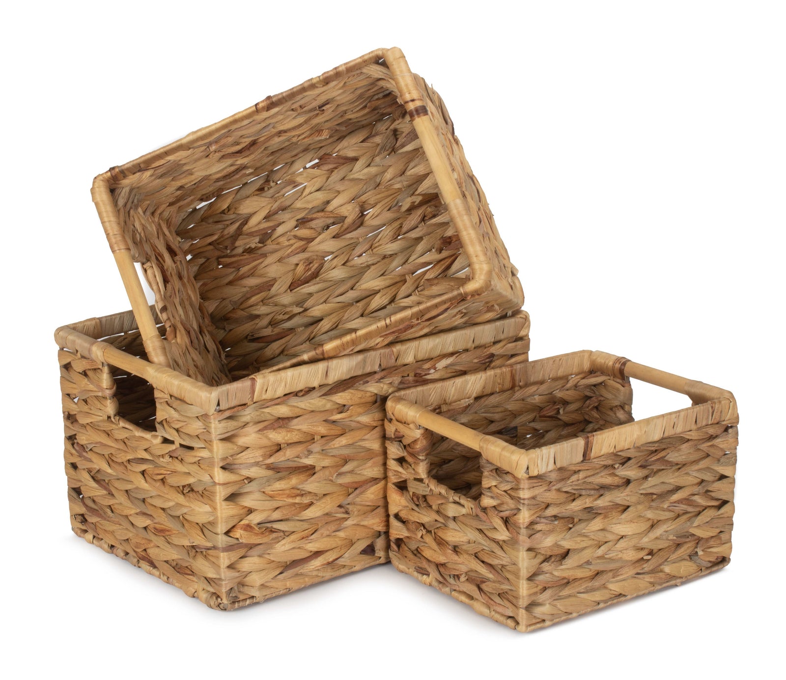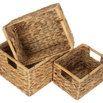 available in three sizes, the measurements of these baskets may vary slightly due to the use of natural materials. The small size measures 24 x 19 x 16cm, the medium size measures 29 x 22.5 x 18cm, and the large size measures 34 x 26 x 20cm. Whether you need a small basket for organizing toiletries in the bathroom or a large basket for storing blankets in the living room, there is a size to suit your needs.