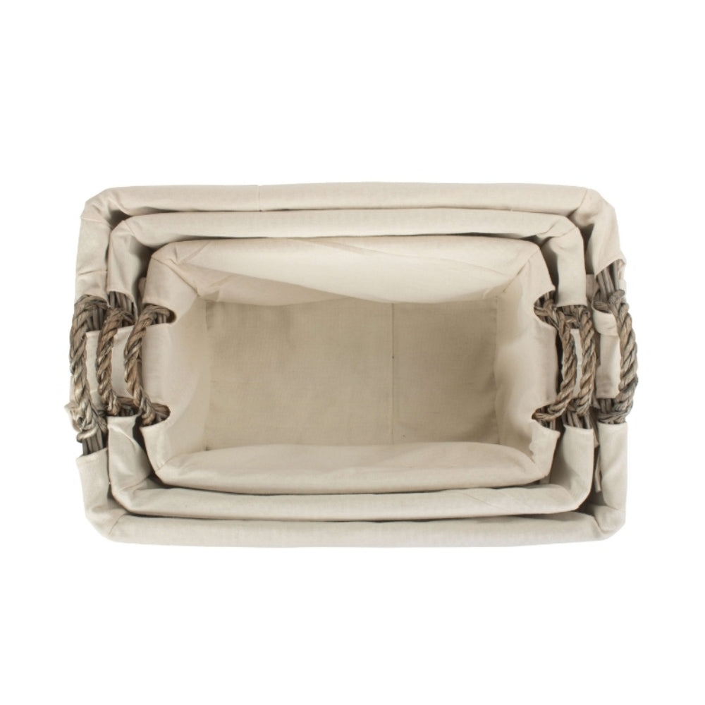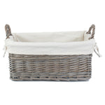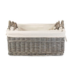 Wicker shallow antique wash cotton lined storage basket, a charming and practical addition to any home decor. This antique wash finish wicker storage basket exudes a timeless elegance, perfect for adding a touch of vintage charm to your living space.
