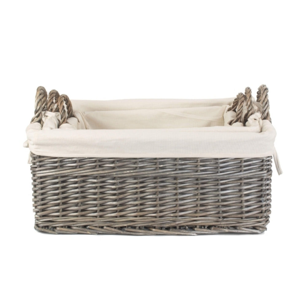 crafted from high-quality willow with a full antique wash finish, this storage basket is not only stylish but also durable and long-lasting. The removable cotton lining adds a soft and delicate touch, making it ideal for storing delicate items or linens.