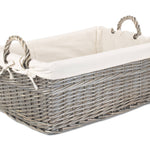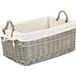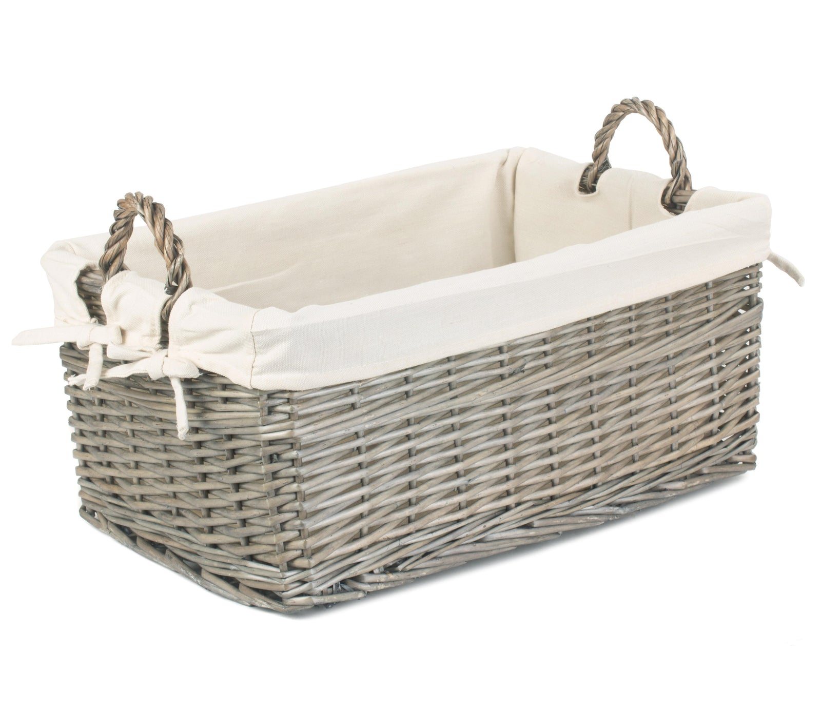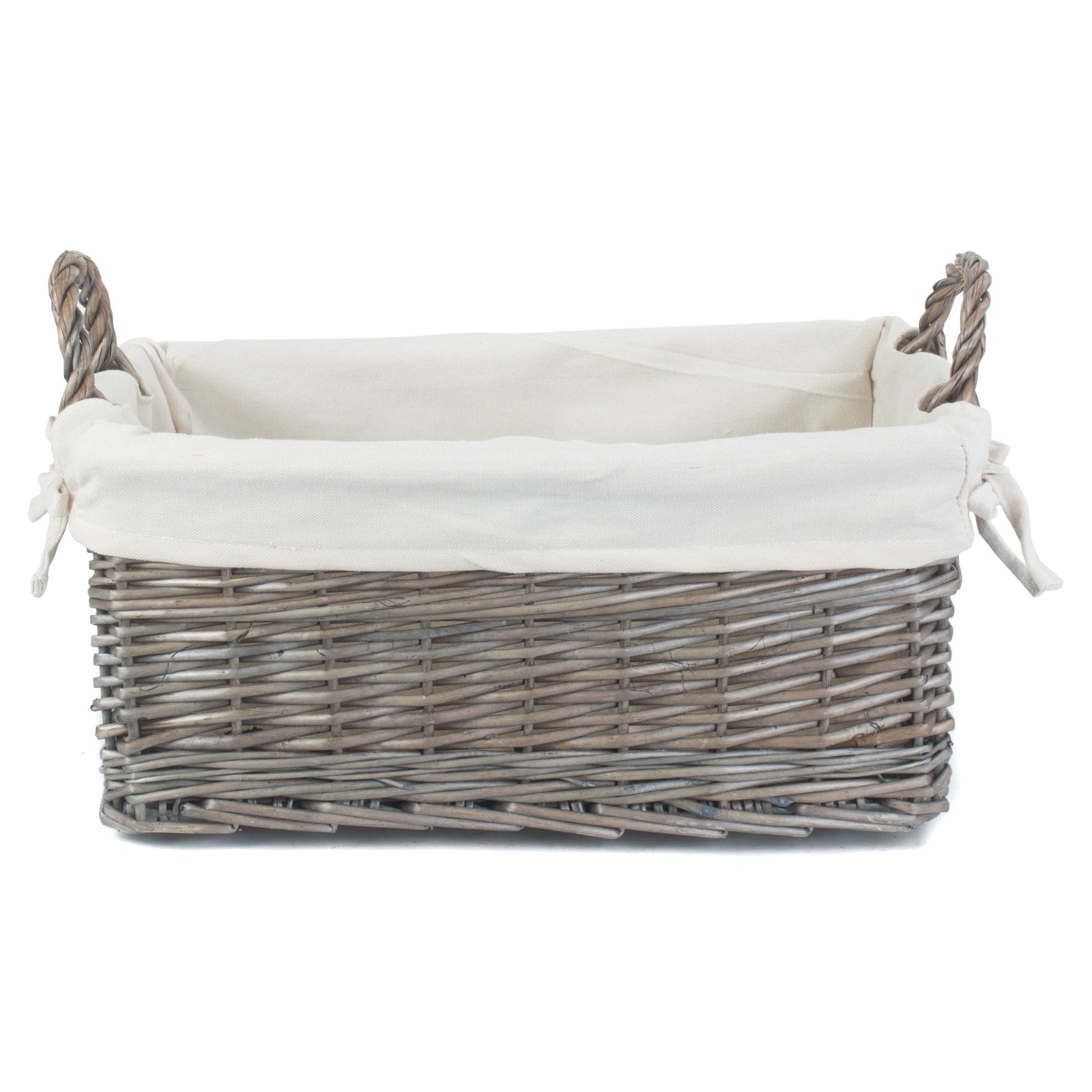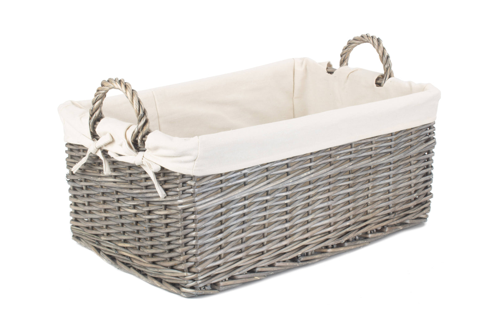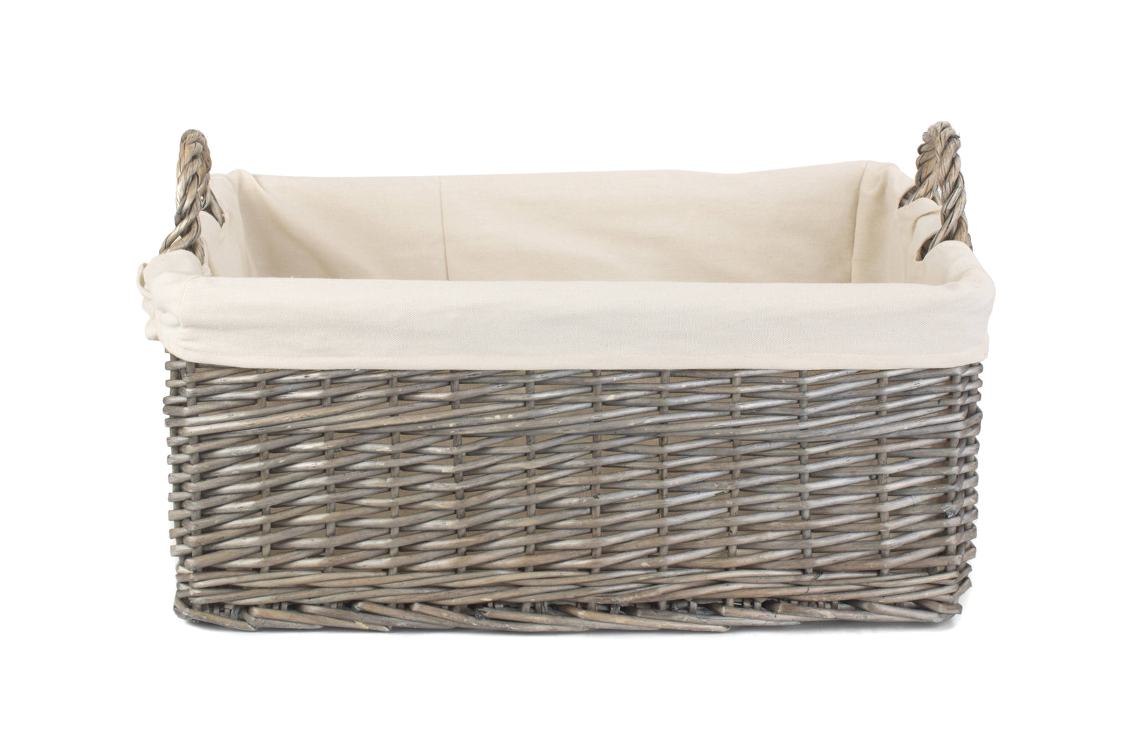 add a touch of rustic charm to your living space with our wicker shallow antique wash cotton lined storage basket.