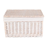 whether you use it to store blankets, magazines, or toys, this wicker storage basket is a versatile and stylish addition to any room in your home. Bring a touch of rustic charm and organization to your space with our wicker antique wash cotton lined storage basket.