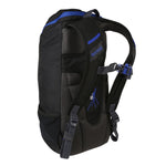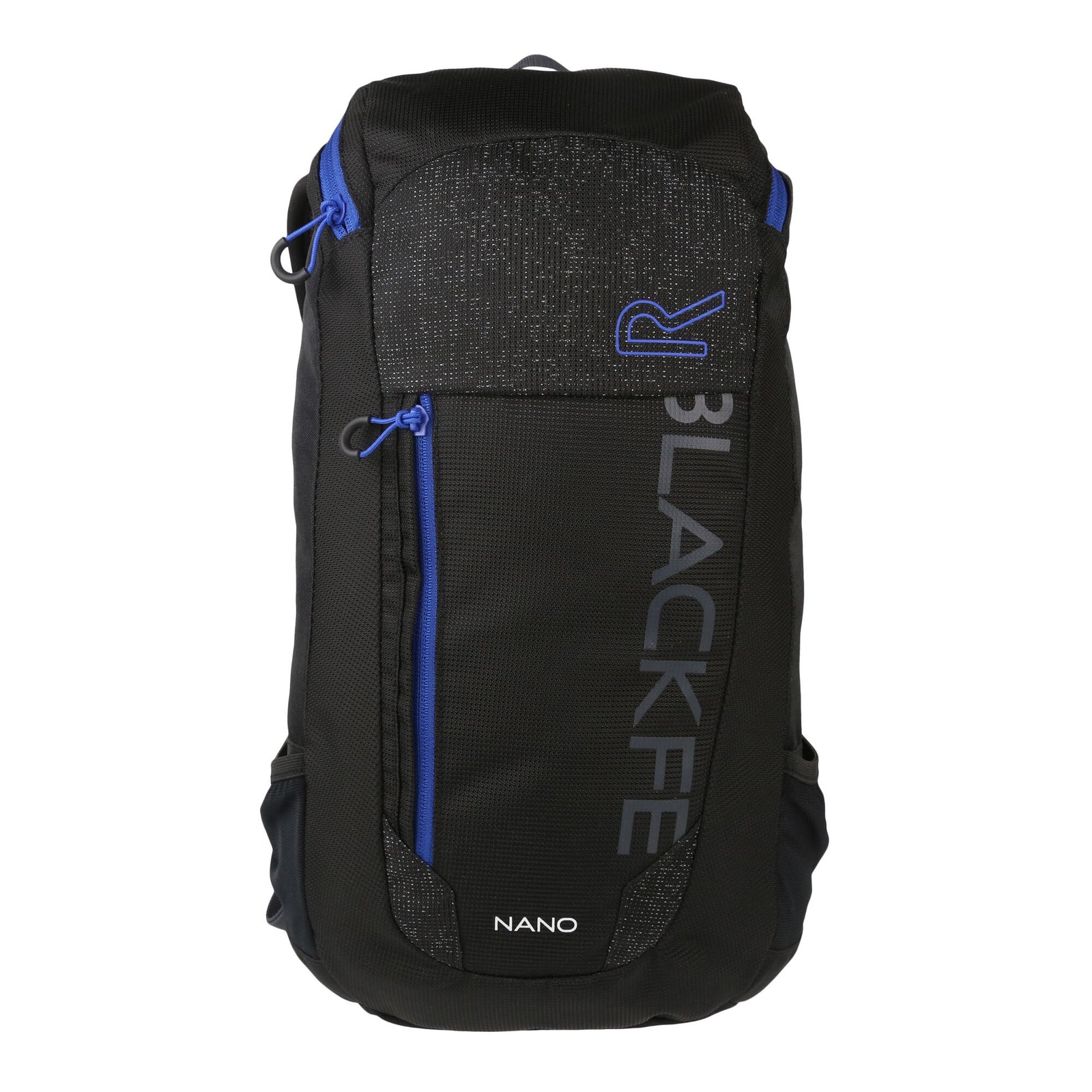 This product description covers a 12-litre children's backpack manufactured by blackfell. The main body of the rucksack is constructed from hardwearing 100% polyester fabric. For enhanced safety, it features highly reflective printed panels in strategic areas to aid visibility. The back section utilises an air mesh construction to allow airflow and ventilation for the wearer. Adjustable shoulder straps and a sliding chest harness made from breathable air mesh materials provide a comfortable fit. Dual soft micro mesh side pockets are provided for water bottles. A zipped front pocket offers additional secure storage. Reflective trim accents complete the finish. Overall this lightweight backpack offers practical carrying capacity and features for active young people.