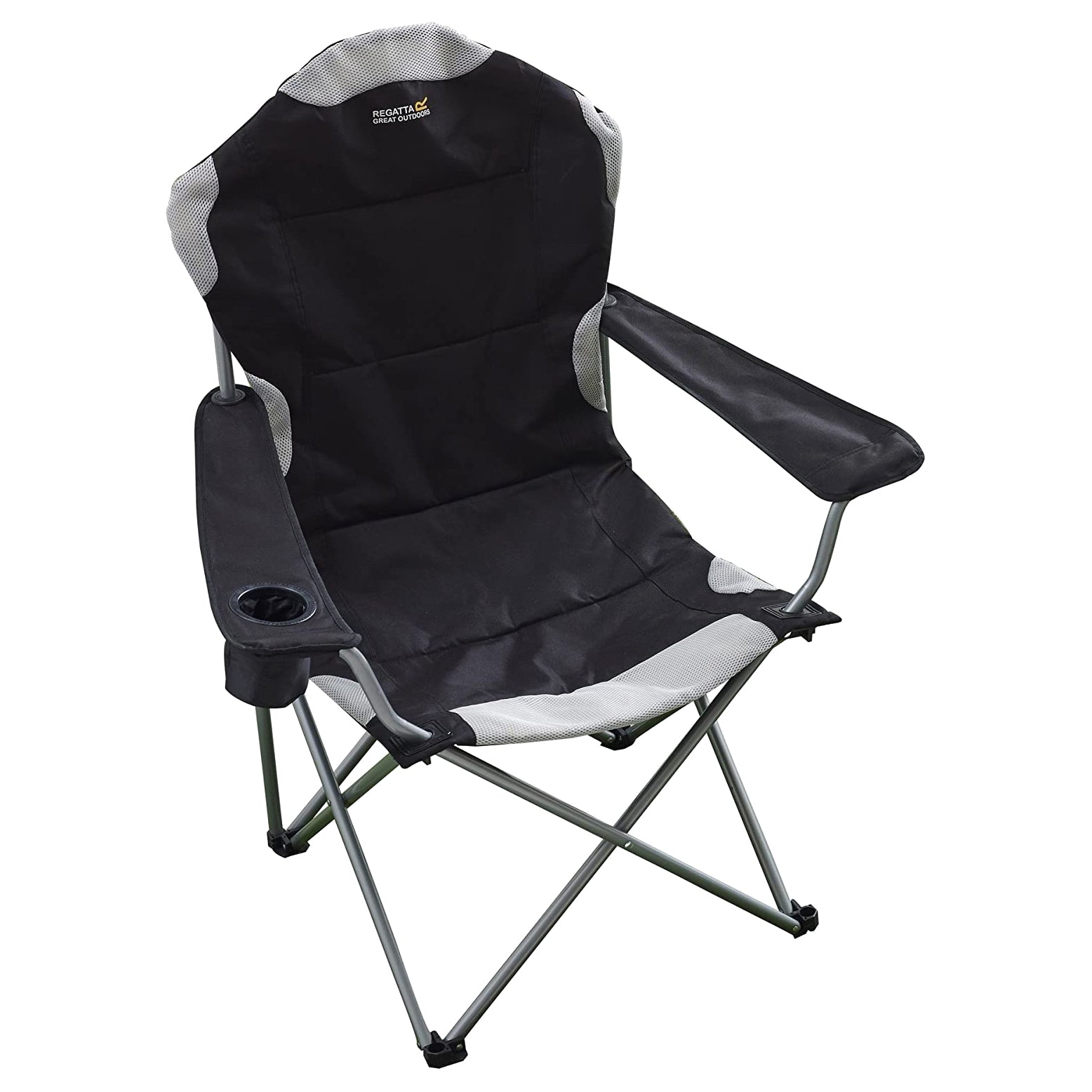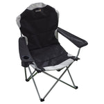 This lightweight padded camping chair from great outdoors kruza requires minimal assembly. It easily folds out for immediate use. Offering all the comfort one needs to relax and enjoy nature, it features insulated cup holders built into the arm rests. A storage bag is also provided for effortless portability. Made from 100% polyester, this chair allows users to sit back with a cold drink in hand while caravanning or camping. A storage bag is included for convenient transportation.