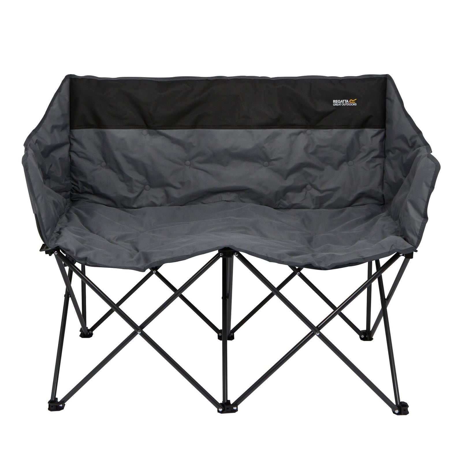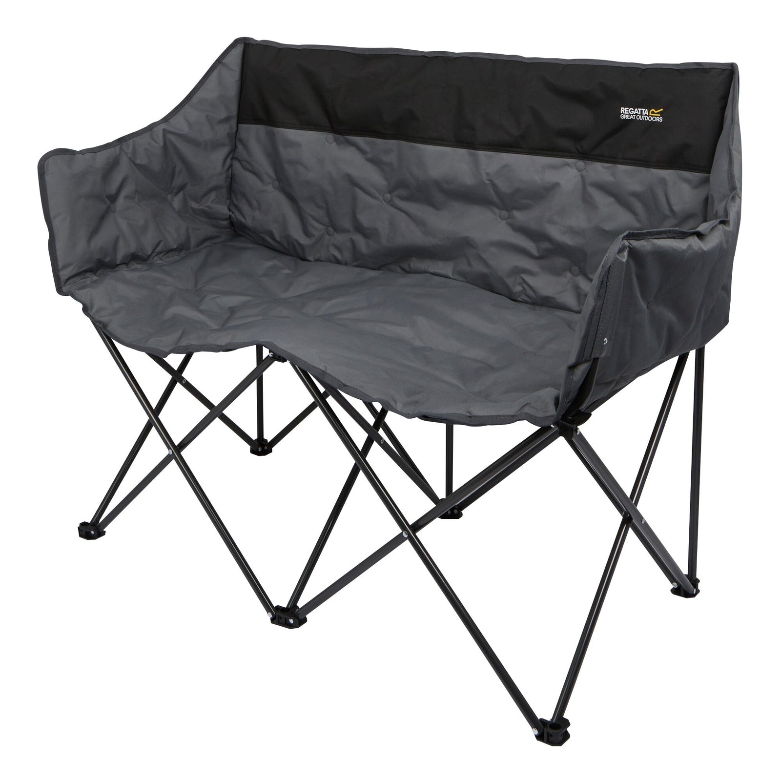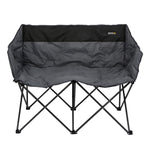 This two-person camping chair from navas is made from 600d polyester fabric. The chair has a weight capacity of 200 kilogrammes and comes with a storage bag. It features a colour block design with the navas logo. The chair is durable, foldable, padded and sturdy. It has a steel frame and is constructed from recycled materials, making it a sustainable option.