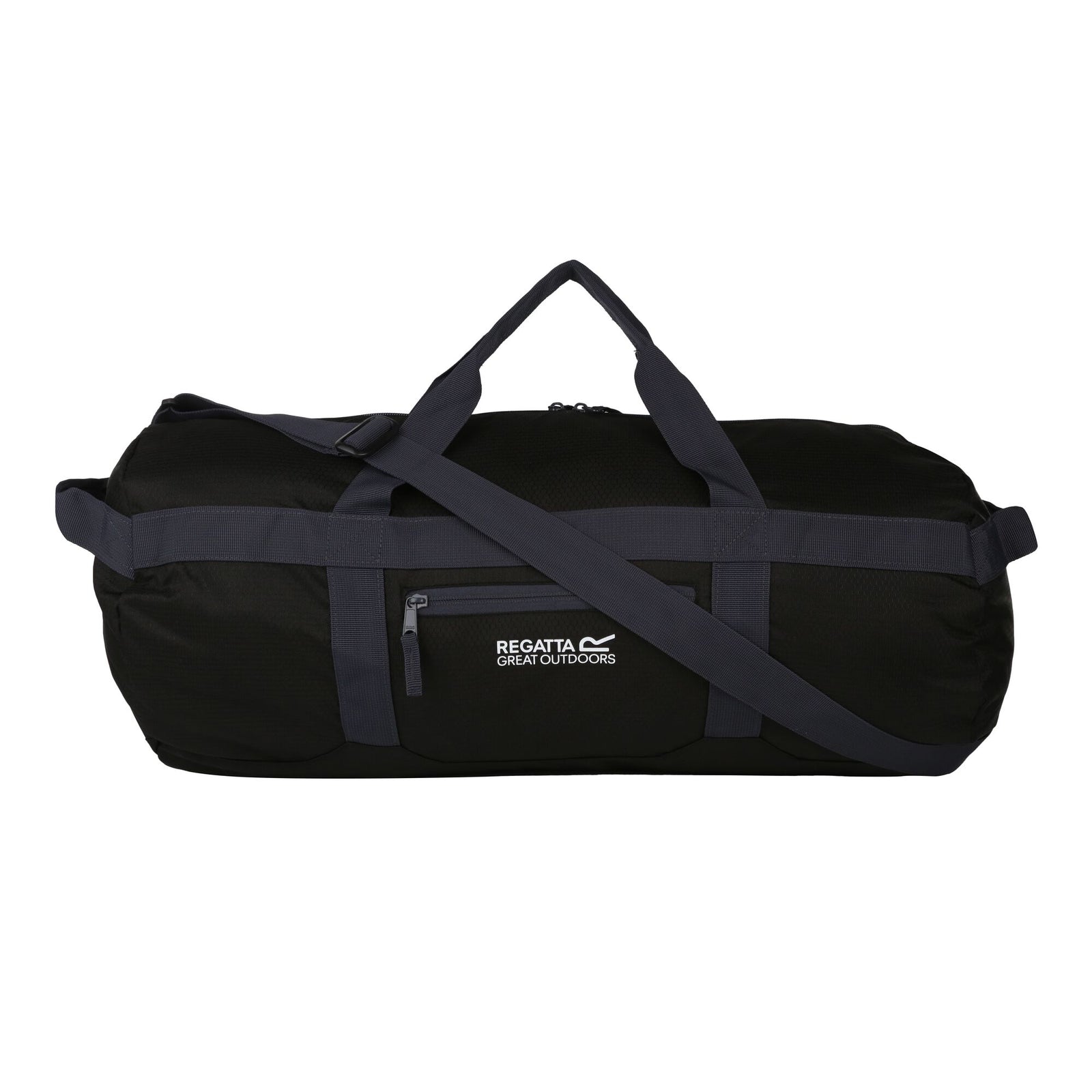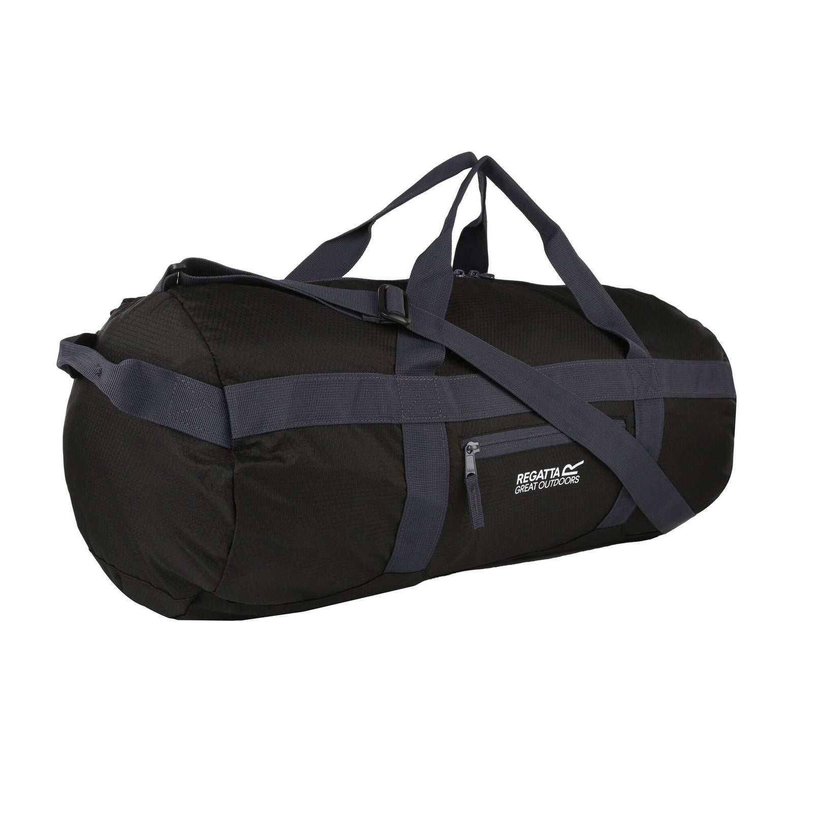 This 100% polyester duffle bag has a 40 litre capacity and is made from lightweight polyester honeycomb fabric. A key feature of this bag is that it can pack away into its own front pocket for easy storage, thanks to its collapsible design. The large main compartment provides plenty of space for belongings. Additional features include an adjustable shoulder strap for comfortable carrying and grab handles for ease of lifting. When packed, the bag measures approximately 23. 6 x 14. 8 x 9. 4 cm.
