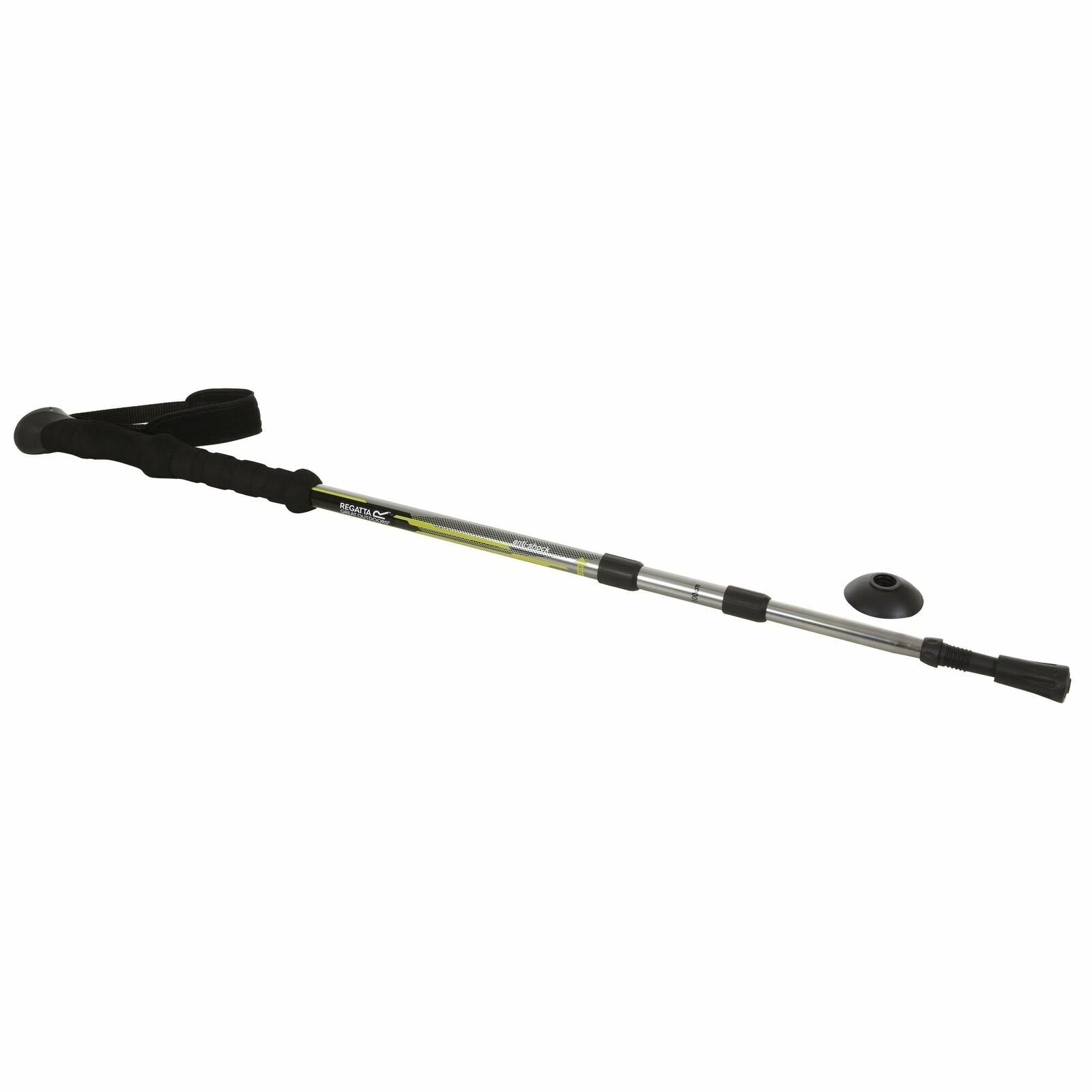 This product is a unisex, adult walking pole designed for lightweight use. It features an ultralite design using telescopic, aluminium tubing that allows adjustable height settings. For comfortable gripping, there is a soft, moulded rubber handle. An adjustable wrist support and anti-shock absorber are also included for stability and to absorb impacts as the user walks.