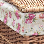 Garden rose cotton lined light steamed square laundry baskets, the perfect blend of functionality and style for your laundry needs. Made from full light steamed willow, these baskets feature a removable cotton/polyester lining with a charming garden rose pattern, adding a touch of elegance to your home.