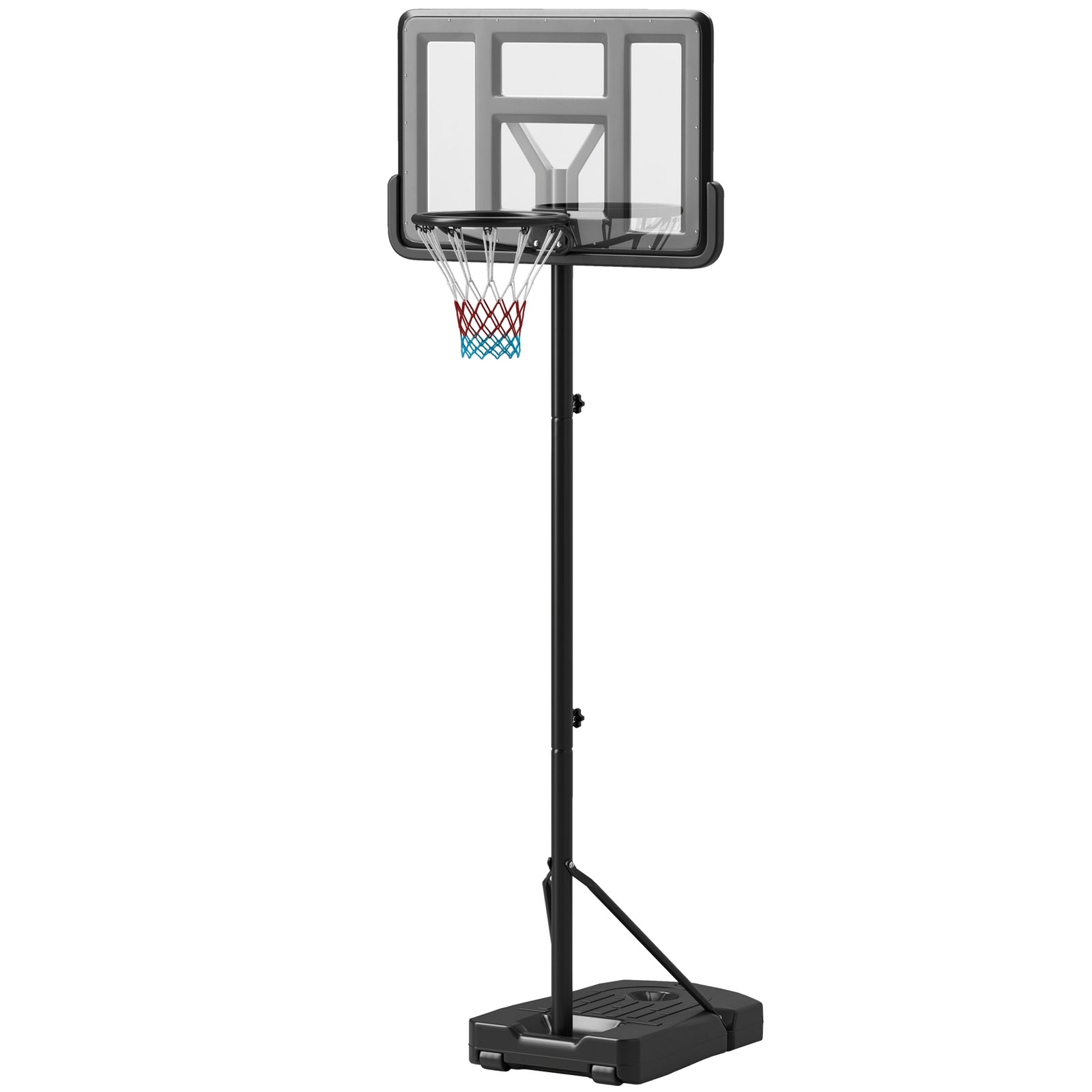 Experience the thrill of basketball with the sportnow basketball stand. Its adjustable height caters to all ages and skill levels, ensuring everyone can join the fun. Built with a powder-coated steel frame for lasting durability, its base is customisable with water or stand for stability. Moving the stand is effortless, thanks to the bottom wheels, allowing precise placement. Whether solo practice or team play, enjoy the exhilarating sound of the ball swishing through the net.