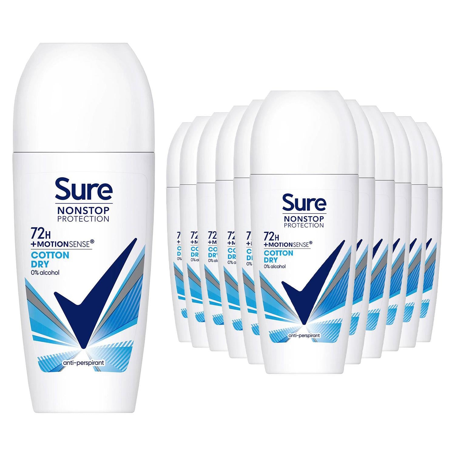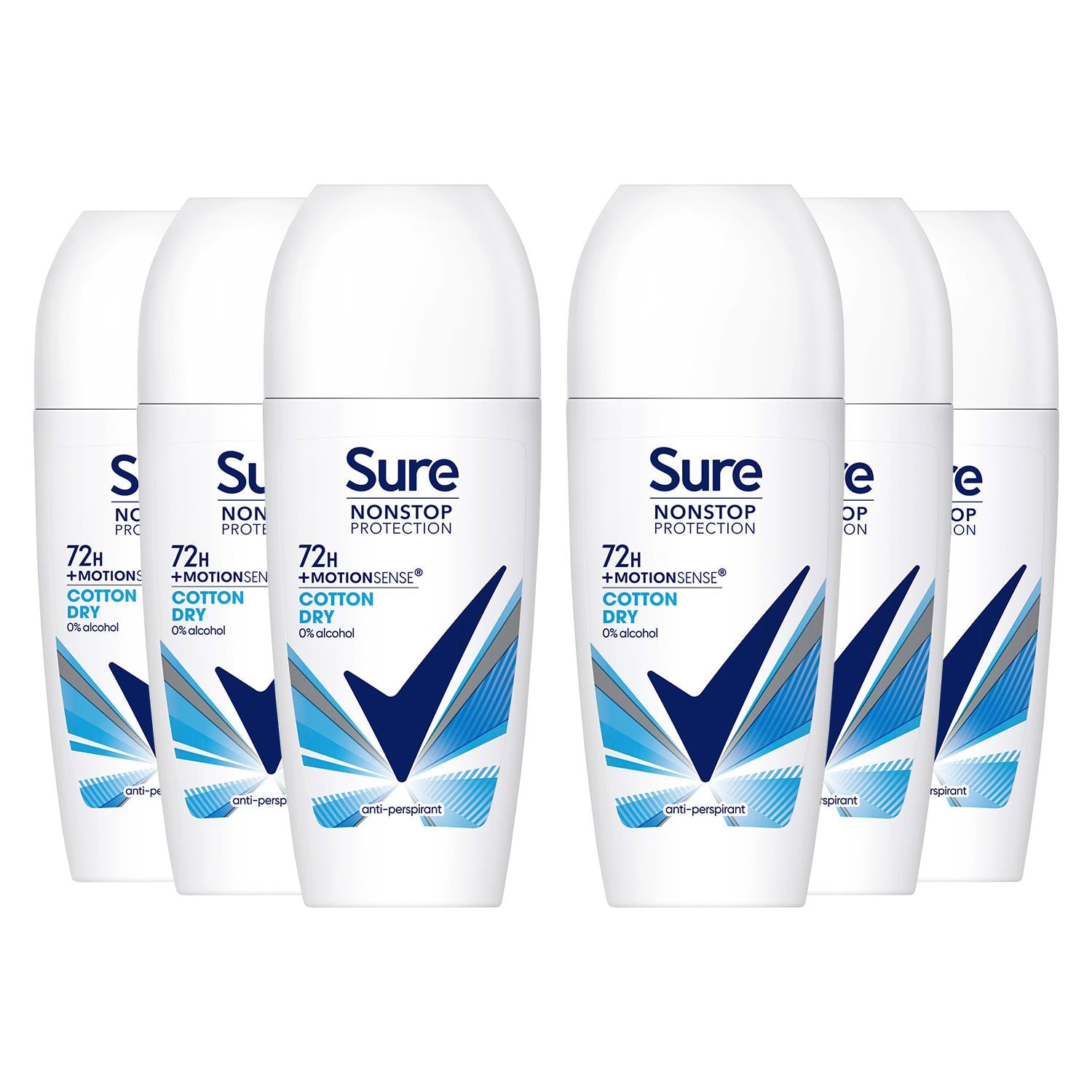 features: sure women antiperspirant deodorant roll on nonstop cotton dry 50ml provides 72-hour nonstop protection against sweat and odourto keep sweat and odour at bay, ensure underarms are dry before applying. Roll on in circular motions, checking coverage is even on both underarmsget all-day freshness and 72-hour nonstop protection from sweat and odour with this alcohol-free antiperspirant deodorant for women, from the uk's no.1 antiperspirant brand roll-on has a new pack shape made with 20% less plasticsure women antiperspirant deodorant roll on nonstop cotton dry allows you to always be protected and feel confident whatever happens. Sure, it won't let you down